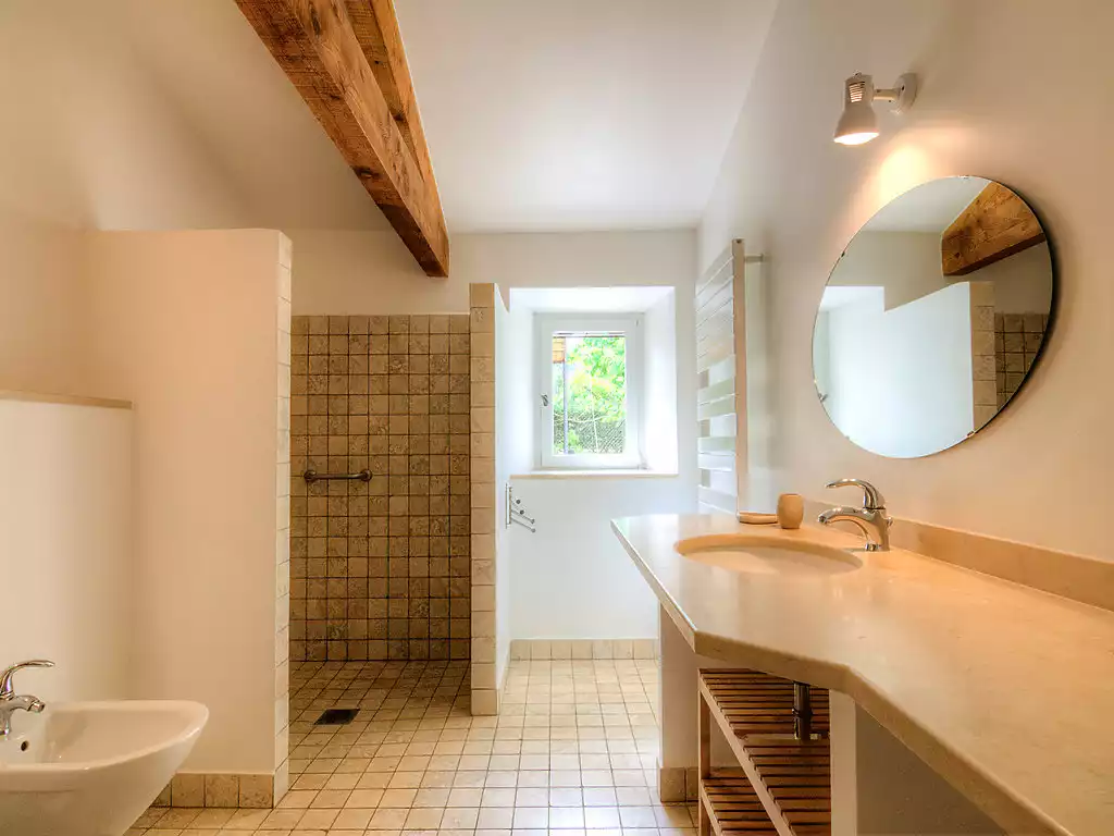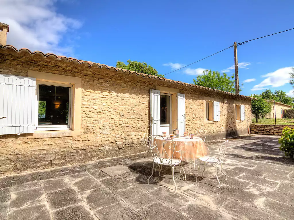 View of the Luberon. Lavender fields surround the house. Single-family house "Gite Curel", detached. Outside the resort, 3 km from the centre, in a secluded, quiet position. For shared use: swimming pool (8 x 4 m, depth 160 - 160 cm, seasonal availability: 15.May. - 01.Oct.) with internal staircase and alarm system. Pool maintenance by the owner/gardener. Private: property 7 ha, meadow. Shop 3 km, grocery 3 km, supermarket 9 km, restaurant 3 km, bus stop "Poste" 2.9 km. Please note: the owner lives on the same property. Owner lives in separate semi-detached house.3-room house 80 m2. Beautiful furnishings: living/dining room with TV (flat screen). Exit to the terrace. 1 room with 1 french bed (1 x 160 cm, length 200 cm). 1 room with 2 beds (90 cm, length 200 cm). Kitchenette (4 hot plates, oven, dishwasher, microwave, freezer, electric coffee machine). Shower/bidet/WC, sep. WC. Underfloor heating. Terrace 40 m2. Terrace furniture, electric barbecue, deck chairs (4). View of. Facilities: washing machine. Internet (WiFi, free). Please note: non-smokers only. Smoke alarm.