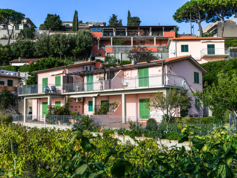 Beautiful, cosy apartment house "Giulia". 6 apartments in the property. In the resort 250 m from the centre of Capoliveri, 5 km from the centre of Porto Azzurro, 14 km from the centre of Portoferraio, in a central position on a slope, excellent location: right in the centre but still quiet, 2.4 km from the sea. For shared use: property (fenced). Barbecue. In the house: washing machine (for shared use, extra). Parking at the house. Shop 500 m, grocery 300 m, supermarket 500 m, restaurant 300 m, bar 200 m, bakery 400 m, 5 minute walk to the centre, bus stop 200 m, ferry "Portoferraio" 14 km, sandy beach "Morcone" 2.4 km. Residence with electric gates.2-room apartment 45 m2, on the ground floor. Practical furnishings: living room with 1 double sofabed, dining table and satellite TV. Exit to the terrace. 1 double bedroom. Kitchenette (4 gas rings). Shower/bidet/WC. Heating, air-conditioning. Terrace 17 m2. Terrace furniture. Beautiful view of the sea. Facilities: mosquito net, hair dryer. Internet (WiFi, free). Parking (roofed, fenced 1 car) at 20 m. Please note: non-smokers only. 1 small pet/ dog allowed. Private entrance, smoke alarm, fire extinguisher. No mandatory extra charges to be paid on-site. IT049004C29ZT9TY75