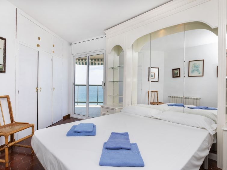 Paseo Maritimo: Simple apartment block "Fanals", 11 storeys. 30 m from the sea, 30 m from the beach, direct access to the beach. In the house: lift. Supermarket 50 m, restaurant 10 m, bakery 150 m, pub garden 50 m, bus stop 100 m, sandy beach "Playa de Aro" 50 m. Nearby attractions: Parque aquatico aquadiver 2 km. Groups of teenagers on request only. Please note: Additional accommodations can be booked. Property ref. ES9460.230 is situated on the same property."Groc", 3-room apartment 70 m2 on 10th floor. Practical furnishings: living/dining room with digital TV. Exit to the terrace. 1 room with 1 french bed (150 cm, length 190 cm). Exit to the terrace. 1 room with 1 french bed (135 cm, length 180 cm). Kitchen (4 ceramic glass hob hotplates, toaster, kettle, microwave, electric coffee machine). Shower/WC. Heating. Large terrace. Terrace furniture. Marvellous view of the sea. Facilities: washing machine, iron, hair dryer. Please note: non-smokers only. TV only ES. HUTG-021250 // Reg. Nr.: ESFCTU00001701700010840700000000000000000HUTG-0212505