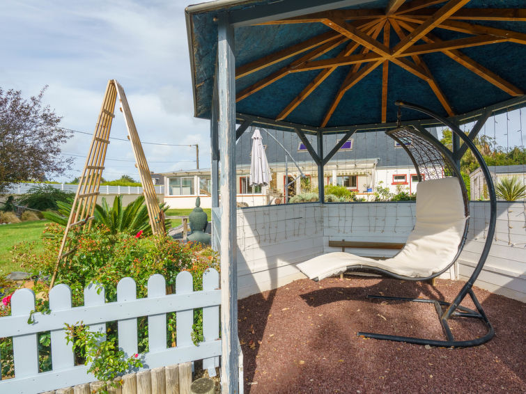 Large single-family house "Guiriden", 2 storeys. In the district of Kergolven 1 km from the centre of Loctudy, in the residential district, 1.5 km from the sea, 2.4 km from the beach, south facing position. Private: property 1'700 m2 (fenced), garden with lawn and wildlife garden, parking (for 2 cars). Shop 2 km, supermarket 1.3 km, restaurant 1 km, bus stop 1 km, sandy beach "Plage de langoz" 2.4 km, outdoor swimming pool 7 km. Sports harbour 2 km, sailing school 2.4 km. Nearby attractions: Pont l'Abbé 6 km, Le Guilvinec 9 km, Penmarc'h, phare d'Eckmühl, La Torche 16 km, Quimper 25 km, Concarneau 39 km, Iles des Glénan. Hiking paths: Baie d'Audierne GR 34."Guiriden", 4-room house 120 m2. Comfortable and beautiful furnishings: large living/dining room with veranda with Scandinavian wood stove (only for decoration), TV (flat screen), radio. Exit to the veranda. 1 room with 1 french bed (140 cm, length 190 cm), shower. Open kitchen (1 hot plate, oven, dishwasher, 3 gas rings, toaster, kettle, microwave, electric coffee machine) with bar. Exit to the veranda. Sep. WC. Upper floor: 1 room with 1 french bed (140 cm, length 190 cm). 1 room with 1 french bed (140 cm, length 190 cm). Shower, double hand-basin. Oil heating. Terrace furniture, barbecue, deck chairs (2). Facilities: washing machine, dryer, iron, hair dryer. Internet (WiFi, free). Please note: non-smoking house. Maximum 1 pet/ dog allowed. Smoke alarm. Offer by a private individual according to Art. 155, IV of CGI.