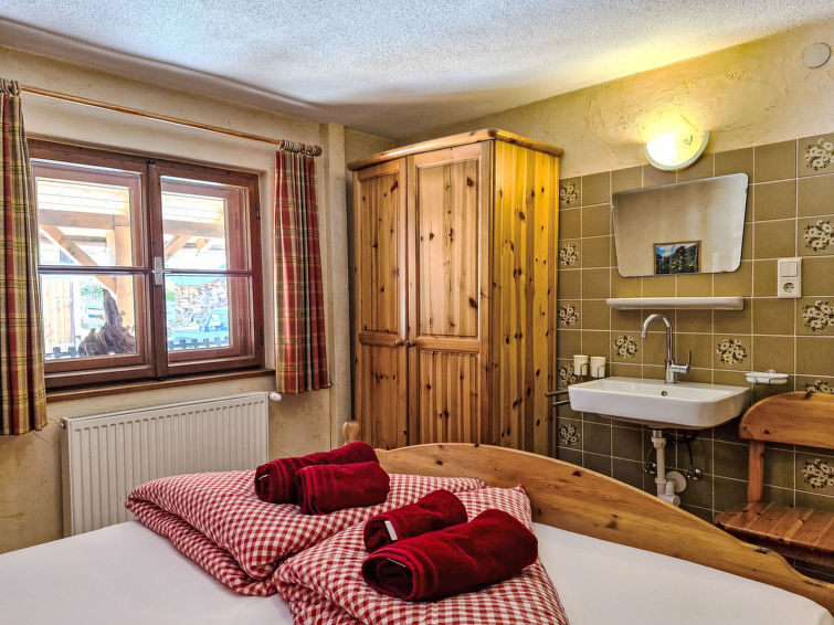 Rustic farmhouse "Haflingerhof", 1'290 m a.s.l., surrounded by trees and meadows. 3 apartments in the property. In the centre of Feichten, 25 km from the centre of Landeck, south facing position. For shared use: well-kept garden with lawn and plants. Patio, garden furniture, barbecue. In the house: lounge, storage room for skis, ski boot dryer. Bread roll service possible on request (extra). Parking (for 4 cars) on the premises. E-charging station. Shop 30 m, supermarket 50 m, bus stop "Linie Landeck-Prutz-Kaunertal" 50 m, railway station "Landeck" 26 km, outdoor swimming pool 13 km, indoor swimming pool. Ski lift 22 km, ski bus stop 50 m, ski school 300 m, sled run 700 m, cross country ski track 100 m. Well-known ski regions can easily be reached: Kaunertaler Gletscher 22 km, Fiss/Serfaus-Ladis 22 km. Well-known lakes can easily be reached: Badesee Ried im Oberinntal 14 km. Please note: ski bus (free of charge). Free ski bus service to the ski region Feichten-Kaunertaler Gletscher & Fendels. Please note: animals in the neighbourhood. "Kaunertal-Summercard" included - numerous discounts such as reduced entry to the indoor swimming pool "Quellalpin" (50m)."Haflingerhof Almrose", 4-room apartment 60 m2, on the ground floor, south facing position. Rustic and wooden furniture furnishings: living room with open-hearth fireplace and satellite TV (flat screen). 1 double bedroom with hand-basin. 1 double bedroom. Kitchen-/living room (oven, dishwasher, 4 ceramic glass hob hotplates, toaster, kettle, microwave, electric coffee machine) with dining nook. Shower, sep. WC. Heating. Patio. Terrace furniture. Facilities: hair dryer. Internet (WiFi, free). Please note: non-smokers only. Maximum 1 pet/ dog allowed.