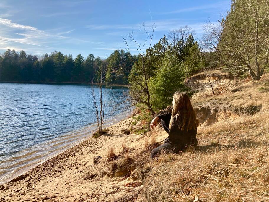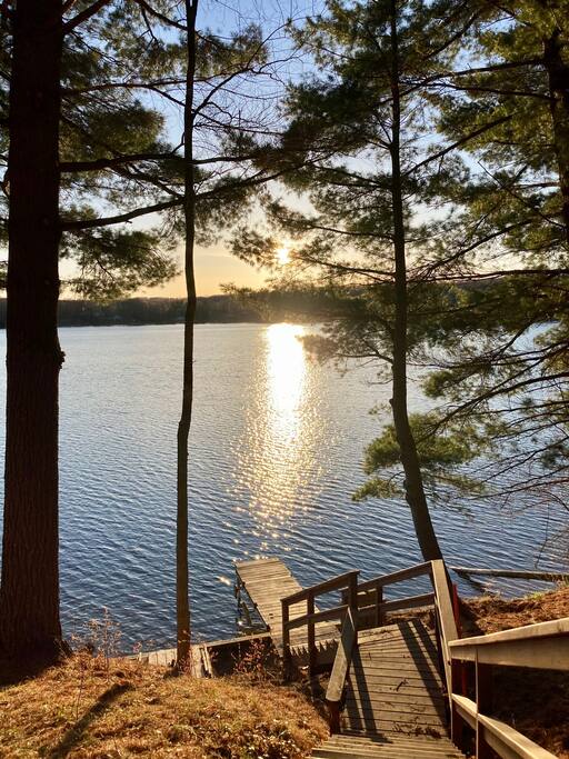 Please Note: Our Cabin is located off a dirt road so if this doesn’t bother you keep reading….The property is surrounded by White Pines and perched upon 65 feet of lakefront sandy bottom access. Across the lake sits a township park, complete with a campground, hiking trails and sand dunes. There is also a 9-hole "volunteer-created" disc golf course.