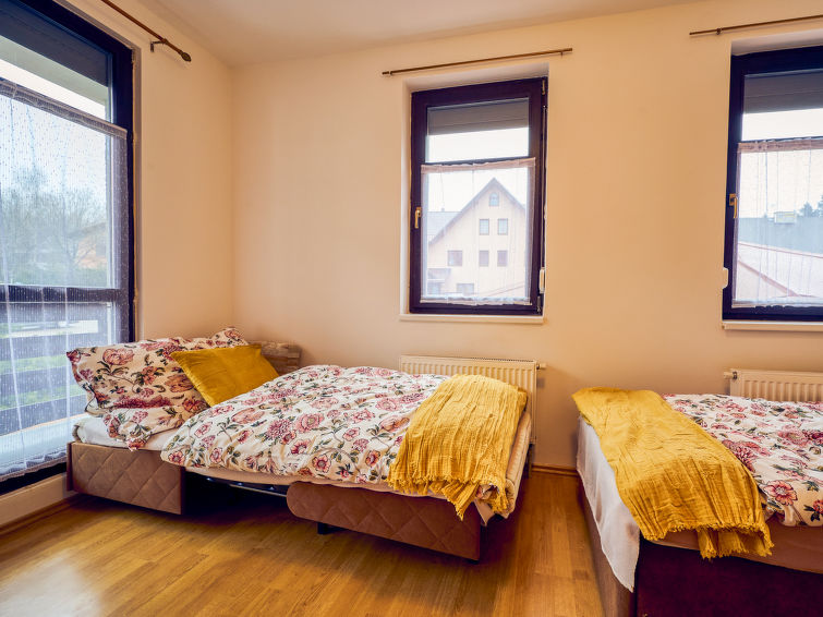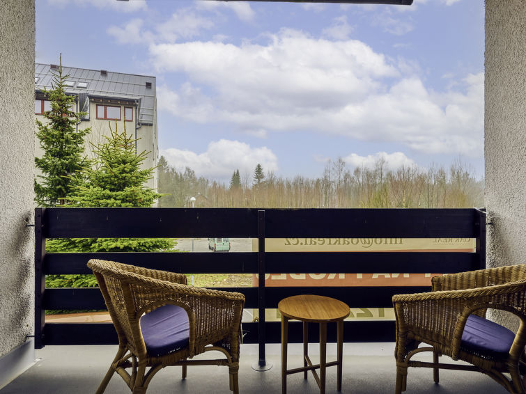 Apartment block "Harrachov 561". In the district of Klondajk 500 m from the centre of Harrachov, in a quiet position in the residential district, 1 km from the skiing area. Parking, single garage. Supermarket 300 m, restaurant 100 m, bar, café, bus stop "Sklárna" 600 m, railway station "Harrachov" 3.5 km. Tennis 1.5 km, minigolf 1.1 km, ski rental 600 m, ski bus stop 600 m, ski school 600 m, cross country ski track 300 m. Nearby attractions: Mumlavský vodopád 3 km, Šindelka 2 km, Ski muzeum 2 km, Hornické muzeum 2.6 km, Harrachovské rybníčky 2.5 km, Bobová dráha 1.1 km. Well-known ski regions can easily be reached: Harrachov 2 km, Hilbert 1 km, Zákoutí 2 km. Hiking paths: Dvoračky 8.5 km, Labská bouda 13 km, Vosecká bouda 10 km."Harrachov Relax & Balcony", 2-room apartment on 1st floor. 1 room with 1 double bed and gas heating. Exit to the balcony. 1 room with 2 beds. Exit to the balcony. Kitchenette (4 hot plates, oven, kettle, microwave) with dining table, TV. Exit to the balcony. Bath/WC. Facilities: baby cot. Garage. Please note: suitable for families. Non-smokers only.