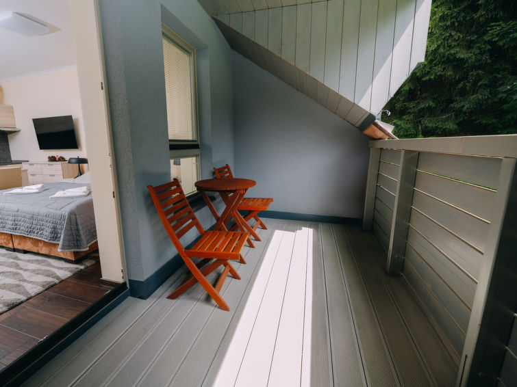 Modern residence, built in 2013. 5 houses in the residence. 500 m from the centre of Harrachov, in a quiet position, 50 m from the edge of the forest, 700 m from the skiing area. For shared use: property 200 m2. Children's playground (slide, swing). In the house: massage (extra). Lift, central heating system. Breakfast on request (extra). Storeroom available. Parking at the house. Shop 1 km, restaurant 400 m, bus stop "Harrachov, Nový Svět, u Motejlků" 500 m, railway station "Harrachov" 2 km, outdoor swimming pool 2 km. Tennis 2 km, indoor tennis centre 2 km, ski lift 50 m, chair lift 700 m, slopes, ski rental 700 m, ski bus stop 50 m, ski school, children's ski school. Nearby attractions: Bobová dráha 300 m, Mumlavský vodopád 2.5 km, Kořenov 8 km, Jizerka 15 km, Jablonec nad Nisou 29 km, Termy Cieplickie (PL) 30 km, Liberec 35 km, Ještěd 40 km. Well-known ski regions can easily be reached: Čertova hora 700 m, Zákoutí 2 km, Rýžoviště 3 km, Příchovice 10 km, Rokytnice nad Jizerou 15 km. Hiking paths: Western City Karpacz(Pl) 40 km, Park miniatury Kowary44km,Karpacz (Pl) 39 km, Giganteria Piechowice(Pl) 23 km. The keys‘ handover takes place by the agency Interhome Harrachov. HARRACHOV CARD guest card included in the price."Harrachov Resident", 1-room studio 38 m2 on 1st floor. Modern and cosy furnishings: living/sleeping room with 1 double sofabed, 1 double bed and TV. Kitchenette (2 ceramic glass hob hotplates, kettle, microwave, electric coffee machine, Capsules for coffee machine (Dolce Gusto)) with dining table. Shower/WC. Heating. Large balcony. Balcony furniture, box-room. View of the forest. Facilities: Internet (WiFi, free). Parking space n 206. Please note: suitable for families. Non-smokers only.