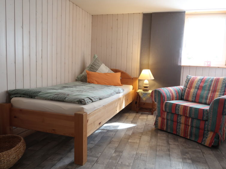 Single-family house "Haus Schwärzel". In the resort, 150 m from the centre, in a quiet position. In the house: central heating system. Parking at the house. Shop 300 m, grocery 700 m, restaurant 150 m, bakery 700 m, bus stop 150 m, railway station "Offenburg" 17 km, indoor swimming pool 15 km, bathing lake "Matschelsee" 5 km. Golf course (18 hole) 26 km, cycle lane 500 m. Nearby attractions: Europa Park Rust 26 km, Alstadt Strassburg 28 km, Alstadt Freiburg 55 km. Well-known ski regions can easily be reached: Feldberg 90 km. Well-known lakes can easily be reached: Tunisee Freiburg 45 km, Titisee 78 km. Hiking paths: Ortenau 1 km, Kaiserstuhl 30 km. Rhein, 4 km. This historical, half timbered house which has been lovingly restaured according the building´s original style. Access to a nice outdoor area, a sunny courtyard and an individual sitting area in the garden.5-room house 135 m2 on 2 levels, on the ground floor. Living room with satellite TV (flat screen), radio and CD-player. 1 room with 1 bed. 1 double bedroom. Kitchen-/living room (oven, dishwasher, 4 ceramic glass hob hotplates, microwave, electric coffee machine) with dining table. Shower/WC. Upper floor: 2 double bedrooms. Shower/WC. Box-room. Facilities: washing machine, iron, children's high chair, logs (free). Internet (WiFi, free). Please note: non-smoking house. Maximum 2 pets/ dogs allowed. Lounge with tiled stove and 80 cm TV with 200 domestic and international channels. Access to the single bedroom through the lounge. One of the 2 double bedrooms has an open timbered wall separating it from a nursery with cot and changing table. Comfortable seating corner in the hall on the top floor.