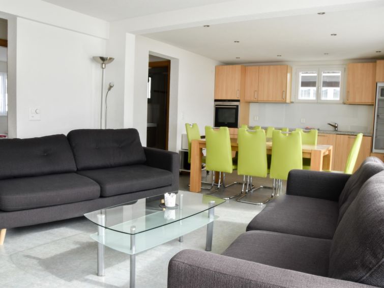 5-room apartment: 2 double room with washbasin, 2 sleeping room with 2 beds, shower/WC, bath/WC/hairdryer, big dining kitchen with refrigerator, oven, dish-washer, microwave, toaster, coffe maker and a living room with divan, TV, central heating, south balcony, ski room. Near the cable car stations and the sports field.
