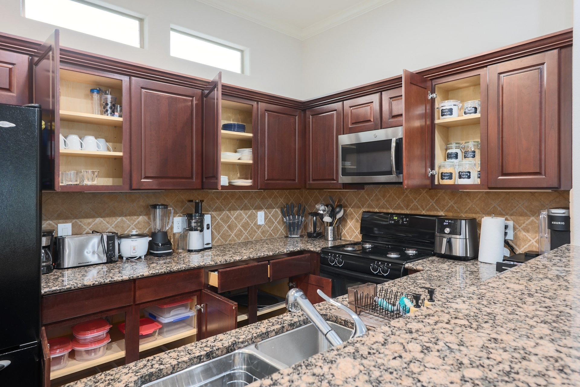 Boasting high ceilings and large windows, the natural light floods in and illuminates the stylish furniture. The fully stocked kitchen is a food lover’s dream, complete with everything you need to create your own culinary masterpieces, including a spices, K-cup coffee machine, blender, rice cooker, cold press juicer, pots and pans, food storage containers, and a pot coffee maker. Also, we have bidets in all three bathrooms.