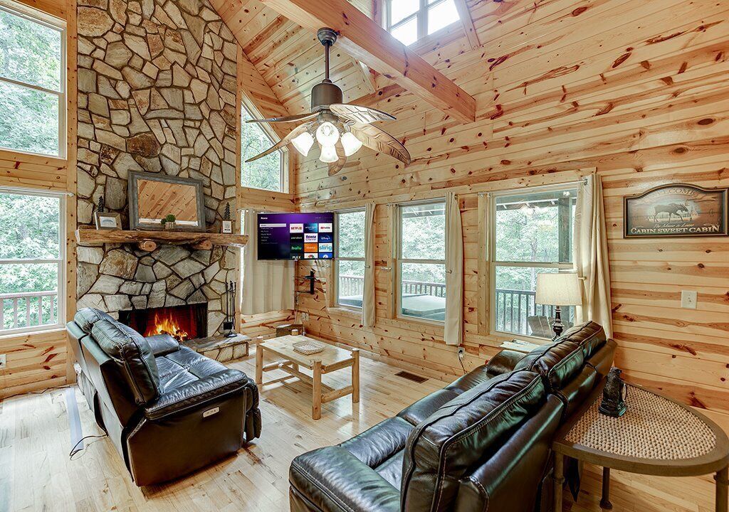 Holiday is designed to make your vacation great, so you’ll appreciate the granite countertops, high-end cabinets, custom tile, hardwood floors, and much more. Holiday is nestled in a private wooded area overlooking a babbling creek, so enjoy a peaceful walk along the trail in back and then relax indoors in an amazing heated spa bath. Let Holiday make your next special occasion into a date to remember.