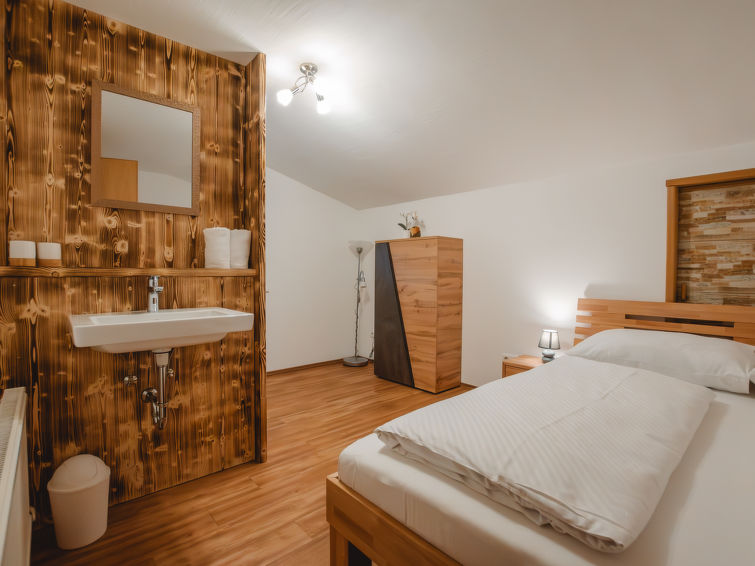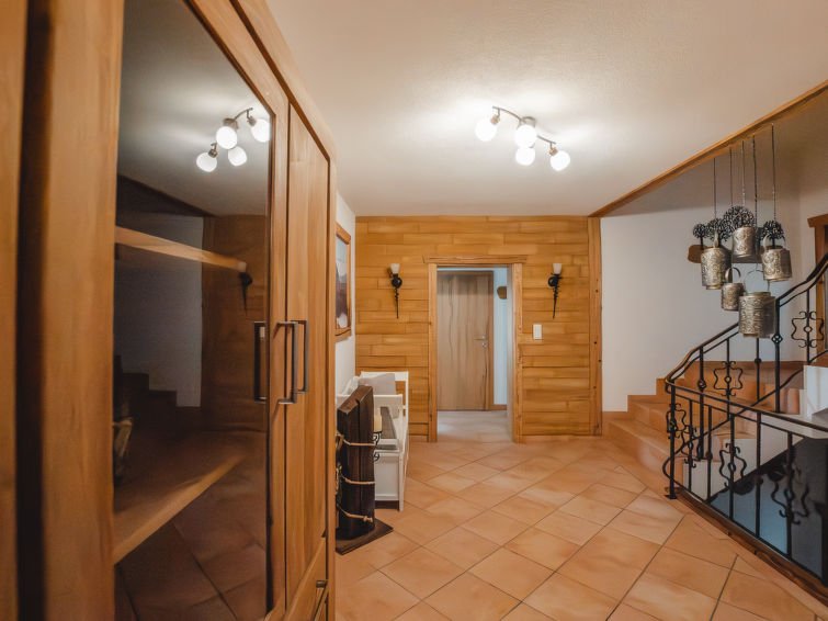 Dogs only allowed during summer season, 01.05. - 31.10. Very beautiful 2-family house "Hüttaler", 2 storeys. In the district of Mühlbach, in the centre of Mühlbach 2.5 km from the centre of Bramberg, 9 km from the centre of Mittersill, 9 km from the centre of Neukirchen, in a central, secluded, sunny position, 4 km from the lake, 2.5 km from the skiing area. For shared use: (swing). Private: terrace, garden furniture, barbecue house. In the house: WiFi, storage room for bicycles, storage room for skis, central heating system. Roofed, parking (for 2 cars) at the house. Grocery 100 m, supermarket 2.5 km, restaurant 50 m, café 100 m, bus stop "Mühlbach Ortsmitte" 800 m, railway station "Wenns" 2.3 km, bathing lake "Hollersbach" 4 km. Skisport facilities 2.5 km, ski bus stop 800 m, sled run 2.5 km. Nearby attractions: Krimmler Wasserfälle 20 km. Well-known ski regions can easily be reached: Wildkogel 2.5 km, Kitzbühler Alpen 2.5 km."Hüttaler", 6-room apartment 200 m2 on 2 levels. Spacious and bright, very tasteful and cosy furnishings: upper floor: entrance hall. Living room with dining table, cable TV and flat screen. Exit to the balcony. 2 double bedrooms. Exit to the balcony. 1 double bedroom with cable TV and flat screen. Exit to the balcony. Open kitchen (dishwasher, 4 ceramic glass hob hotplates, toaster, kettle, microwave, freezer, electric coffee machine, raclette grill) with dining nook. Shower, sep. WC. 2nd upper floor: 1 double bedroom with shower. Living room with Scandinavian wood stove (only for decoration), cable TV and flat screen. Sep. WC. Parquet floors, natural stone floors. Large balcony. Balcony furniture, box-room. Marvellous panoramic view of the mountains and the countryside. Facilities: washing machine, dryer, iron, mosquito net, baby cot for up to 2 year olds, hair dryer. Internet (WiFi, free). Please note: non-smokers only. Maximum 1 pet/ dog allowed. Fire extinguisher. 50601-000683-2023