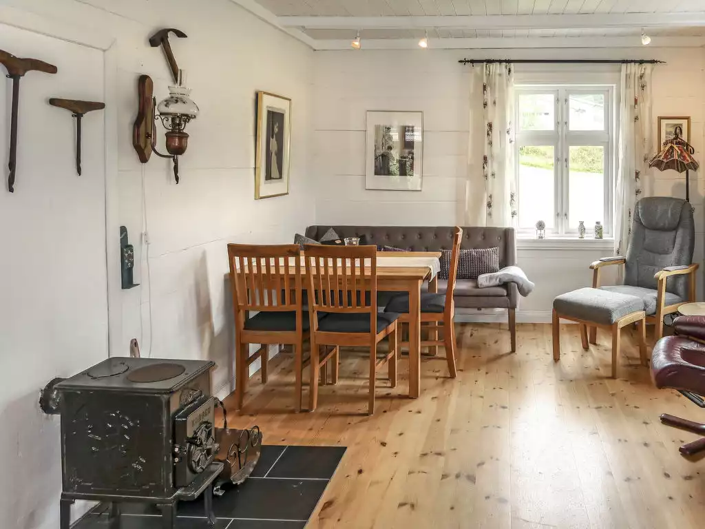 Certified fishing house "Ikjefjord". In the hamlet Ikjefjord 6 km from the centre of Massnes, 68 km from the centre of Høyanger, 121 km from the centre of Bergen, 80 m from the sea, 80 m from the fijord. Bathing place. Private: property with meadow. Fish-processing table. Motor boat (on order), parking on the premises. Shop 26 km, supermarket 29 km, bus stop 500 m, ferry "Bergen" 121 km. Fishing possibilities 300 m."Ikjefjord", 4-room house 74 m2 on 2 levels. Practical and cosy furnishings: living room with Scandinavian wood stove and TV. 1 room with 1 x 2 bunk beds (75 cm, length 200 cm). Kitchen (4 hot plates, oven, dishwasher, microwave, freezer, electric coffee machine) with dining table. Shower/WC. Upper floor: (steep stair), 2 rooms, each room with 1 double bed (150 cm, length 200 cm). Electric heating. Terrace. Terrace furniture, barbecue (portable). View of the sea and fjord. Facilities: washing machine, baby cot. Internet (WiFi, free). Freezer approx. 300 l. 924531169