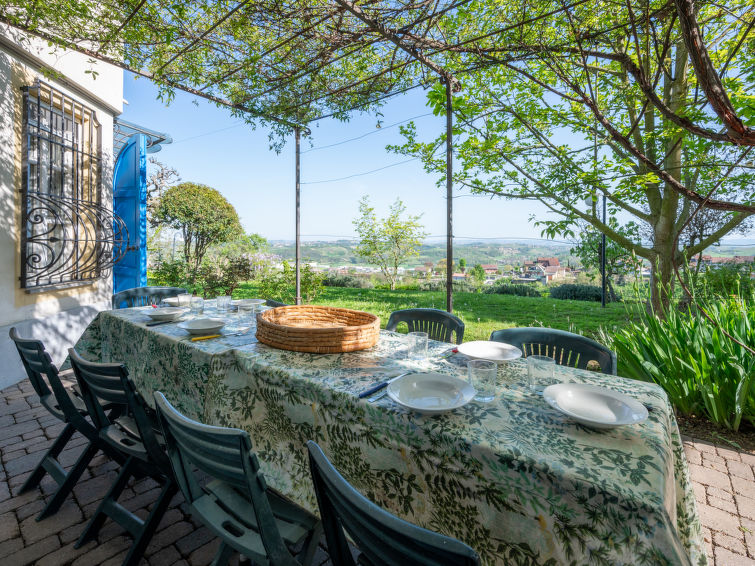 Country house "Il Carroccio", detached, surrounded by meadows and vineyards. 2 apartments in the residence. In the district of Torrazzo 2 km from the centre of San Damiano d'Asti, 15 km from the centre of Asti, 25 km from the centre of Alba, on top of a hill, in the countryside. For shared use: property 3'000 m2, garden with plants, meadow, swimming pool (above ground) (10 x 5 m, depth 130 cm, seasonal availability: 07.Jun. - 15.Sep.). Shower/WC in the pool area, patio, arbour, pool maintenance by the owner/gardener, parking at the house on the premises. Supermarket 2 km, bus stop 2 km, railway station "Asti" 15 km, outdoor swimming pool 2 km. Golf course (9 hole) 16 km. The owner does not accept any youth groups. Residence with electric gates. Obligation to wear bathing caps.8-room house 270 m2 on 3 levels. Practical and rustic furnishings: living/dining room with open-hearth fireplace, dining table and satellite TV. Exit to the terrace. Living/dining room with Scandinavian wood stove, dining table and satellite TV. Exit to the terrace. 1 room with 1 bed. Exit to the garden. Kitchen (oven, dishwasher, 4 gas rings, toaster, kettle, microwave, freezer). 2 hip baths/WC. Upper floor: 1 room with 2 beds. 1 room with 1 double bed. Exit to the veranda. 1 room with 1 double bed and shower/WC. Exit to the veranda. Bath/WC. Top floor: 2 rooms with sloping ceilings, each room with 2 beds and hip bath/WC. Heating. Heating available only from 01.10. to 05.05. Natural stone floors. 2 terraces. Terrace furniture, barbecue. Panoramic view. Facilities: washing machine. Internet (WiFi, free). Please note: non-smoking house. Maximum 1 small pet/ dog allowed. No internal connecting door between the separated properties. IT005097C1UATHVKZ9