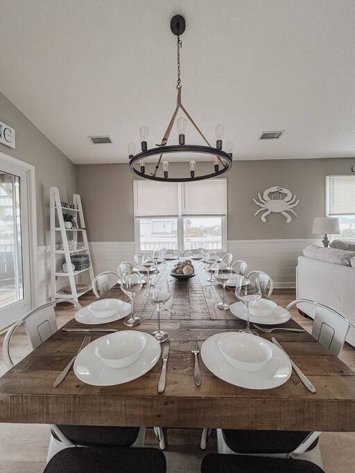 Filled with coastal charm, the bright and open great room will definitely be the center of activity. The updated kitchen with island seating is well stocked with everything you need to make a family feast or a quick breakfast, plus it has TWO dishwashers to make cleanups super easy. There is a large dining room table, perfect for meals together or family game night, and a comfy family room where everyone can gather to watch TV or talk about their fun day at the beach. There is an additional sitting/lounge area on the upper level that has a desk in case you need to work, as well as a King bedroom with en-suite bath.