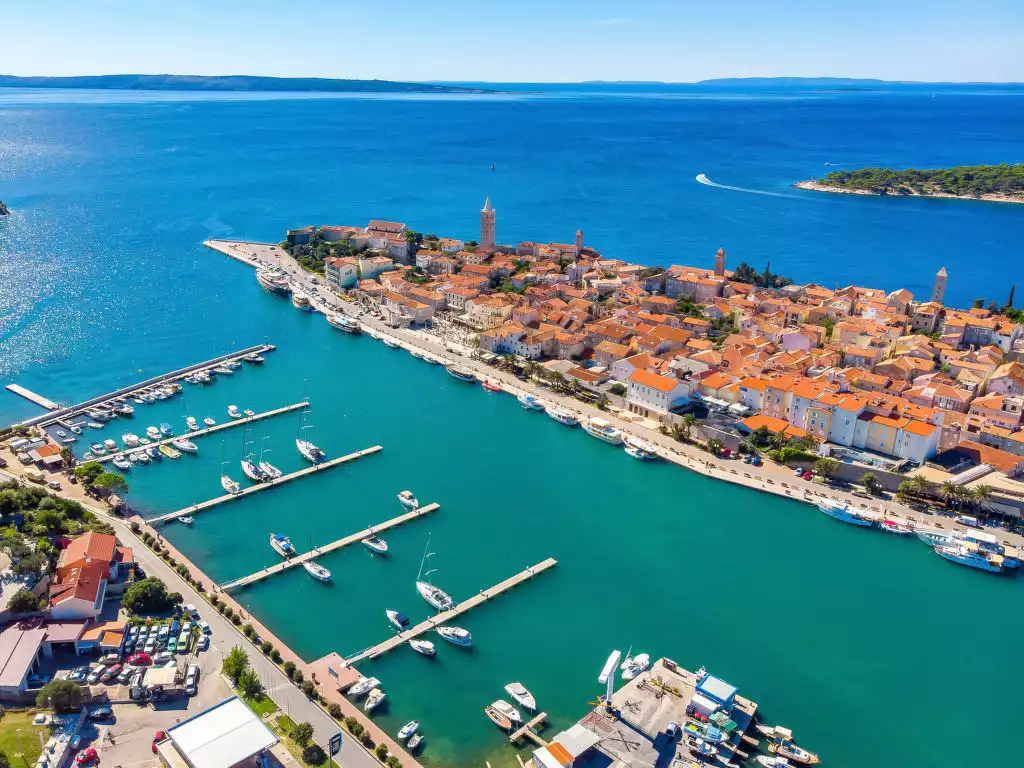 Beautiful apartment block. In the district of Banjol 200 m from the centre of Rab, in a quiet, sunny position, 200 m from the sea, 500 m from the beach, in a cul-de-sac. For shared use: property (fenced), well-kept garden with lawn, swimming pool heated (8 x 4 m, depth 120 - 160 cm, seasonal availability: 13.May. - 30.Sep.) with internal staircase. Outdoor shower, garden furniture, barbecue. In the house: internet access. Roofed, parking at the house on the premises. Shop 100 m, restaurant 30 m, bus stop 450 m, sandy beach, pebble beach 700 m, rocky beach, public bathing area, concrete beach 500 m. Please note: the photograph shows a typical example. Property ref. HR3700.316 is situated on the same property. The apartment house "Ivana" is situated on the same grounds (700 m2) with the apartment house "Petra", with elliptic shaped swimming pool for shared use, with counterflow. Deck chairs at disposal."Ivana 2", 2-room apartment 36 m2 on 1st floor. Modern and cosy furnishings: living/dining room 18 m2 with 1 double sofabed, satellite TV and air conditioning. Exit to the balcony. 1 room with 1 double bed (160 cm, length 200 cm). Exit to the terrace. Open kitchen (4 hot plates, microwave, freezer). Shower/WC. Balcony, terrace 10 m2, roofed. Terrace furniture. Facilities: safe. Internet (WiFi, free). Parking.