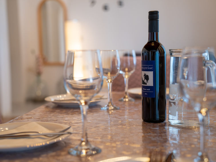 Single-family house "Ivana". 450 m from the centre of Selca, in a sunny, elevated position, 2.6 km from the sea, 3 km from the beach. Private: property 1'000 m2, swimming pool (above ground) round (4,25 m diameter, depth 100 cm, seasonal availability: 01.Jun. - 15.Oct.). Hot tub, garden furniture, barbecue. In the house: internet access, washing machine. Parking (for 3 cars) at the house on the premises. Shop 450 m, restaurant 500 m, bus stop 650 m, rocky beach 3 km, concrete beach 3 km. Please note: suitable for families. Groups of teenagers on request only. The owner does not accept any youth groups.4-room house 100 m2, south facing position. Living/dining room with satellite TV (flat screen), air conditioning. Exit to the terrace. 1 room with 1 french bed (160 cm, length 200 cm). 1 room with 1 x 2 bunk beds (90 cm, length 200 cm), shower/WC. 1 room with 1 double bed (2 x 90 cm, length 200 cm). Open kitchen (4 hot plates, oven, dishwasher). Bath/bidet/WC with corner bath. Terrace 28 m2 partly roofed. Terrace furniture. Distant view of the sea. Facilities: hair dryer. Internet (WiFi, free).