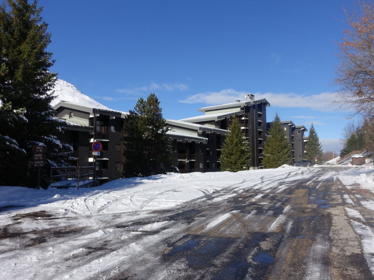 Residence "Le Jettay", 5 storeys. 500 m from the centre of La Croisette, directly by the skiing area. In the complex: storage room for skis, central heating system. Public parking. Grocery, supermarket 200 m, shopping centre 500 m, bus stop "Les Fontanettes Haut" 500 m. Sports centre 500 m, skisport facilities 50 m, slopes 10 m, ski school 500 m. Well-known ski regions can easily be reached: 3 Vallées. Please note: no lift. The photograph shows a typical example. Additional accommodations can be booked. The residence "Le JETAY" is linked to the resort centre (ski school, all shops, tourist office) by stairs. Eagle and jackdaws without elevator entrance."Jettay Aigle 17", 2-room apartment 42 m2 on 2 levels on 2nd floor. Beautiful furnishings: living/dining room with 1 double sofabed (2 x 80 cm, length 190 cm), TV (flat screen). Exit to the balcony. Alcove with 1 x 2 bunk beds (80 cm, length 190 cm). 1 room with 1 french bed (140 cm, length 190 cm). Kitchen (4 hot plates, oven, kettle, electric coffee machine). Bathroom, sep. WC. Heating. Upper floor: gallery with 1 bed (80 cm, length 190 cm). Balcony, west facing position. Beautiful view of the mountains. Facilities: Internet (WiFi, extra). Please note: smoke alarm. Aigle entrance. Instead of an enclosed bedroom, some sleeping areas are located in an open-plan area (gallery, alcove, etc.). 73257003062HT