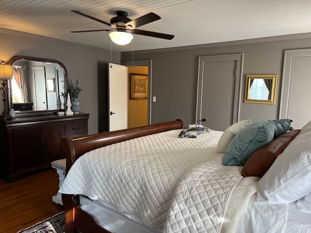 Welcome to this charming three-story brick home, perfect for your next getaway! This spacious home features five bedrooms and three bathrooms, offering plenty of room for everyone. With three king beds and two queen beds, you'll enjoy a restful night's sleep in any of our well-appointed rooms.
