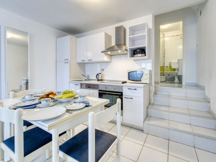3-family house "Jurkovic". 2.5 km from the centre of Njivice, 15 km from the centre of Krk, 900 m from the sea, 900 m from the beach. For shared use: property 600 m2 with lawn and trees. Barbecue. In the house: internet access. Parking at the house on the premises. Shop 300 m, restaurant 2.5 km, bus stop 850 m, pebble beach 900 m. Please note: airfield 11 km from the property."Jurkovic", 3-room apartment 43 m2, on the ground floor. Living/dining room with satellite TV and air conditioning. Exit to the terrace. 1 room with 1 french bed (160 cm, length 200 cm). 1 room with 2 beds (90 cm, length 200 cm). Open kitchen (oven, dishwasher, 4 ceramic glass hob hotplates, toaster, kettle, microwave, freezer, electric coffee machine). Shower/WC. No heating option. Terrace 20 m2. Terrace furniture, deck chairs (2). Facilities: washing machine, baby cot (extra). Internet (WiFi, free). Parking (1 car). Please note: non-smoking house.