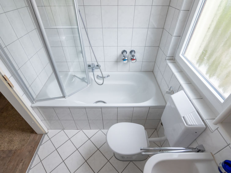Apartment block "Taborstrasse". On the outskirts, 300 m from the centre. For shared use: indoor pool heated (16 x 10 m, seasonal availability: 15.Sep. - 15.Jun., extra). Table tennis, children's playground. In the house: lift, central heating system. Parking at the house. Supermarket 3 km, restaurant 300 m, bakery 4 km, bicycle rental 16 km, bus stop "Rathaus" 300 m, railway station "Löffingen" 5 km, outdoor swimming pool 500 m. Golf course (18 hole) 20 km. Nearby attractions: Freiburg 45 km. Well-known ski regions can easily be reached: Feldberg 35 km. Well-known lakes can easily be reached: Kirnbergsee 6 km, Titisee 23 km, Schluchsee 39 km. Free family ski lift 800 m. The holiday complex consists of two buildings connected by a corridor. Access to the indoor pool (fee required) only with online reservation. Current opening times on the Internet. During the summer holidays: indoor pool closed, outdoor pool free entry. PLEASE NOTE: The apartments in the apartment buildings can only be rented for tourist purposes. Company bookings only on request (confirmation required)."K 40", 3-room apartment 61 m2 on 3rd floor. Simple and cosy furnishings: living/dining room with satellite TV (flat screen), radio. 1 room with 1 double bed (2 x 90 cm, length 200 cm). 1 small room with 2 beds (90 cm, length 200 cm). Small kitchen (4 ceramic glass hob hotplates, toaster, kettle, microwave, electric coffee machine). Bath/WC. Balcony. Balcony furniture. Very beautiful view of the countryside. Facilities: children's high chair, hair dryer. Parking (1 car). Please note: non-smokers only. The beds in the twin bedroom are located one behind the other. The balcony is glazed. Bookings accepted for holiday purposes only.