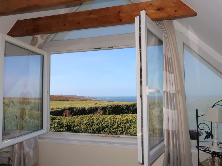 Cléden Cap Sizun 5 km from La Pointe du Raz: Near the "Baie des Trepasses" and the "Pointe du Raz" with lighthouses in the old town and in Le Tevenec, there is an old fishing village, renovated and extended, single-family house "Kerludu". Outside the resort, 250 m from the sea, 450 m from the beach. Private: garden 320 m2 with lawn, parking (for 3 cars) on the premises. Grocery 4 km, supermarket 8 km, restaurant 450 m, bus stop 8 km, sandy beach "La Baie Des Trépassés" 450 m, rocky beach 250 m. Sports harbour 250 m, surf school 450 m. Nearby attractions: Audierne 10 km, Douarnenez 30 km, Locronan 38 km. Please note: car recommended."Kerludu", 5-room house 130 m2 on 3 levels. Beautiful and rustic furnishings: large living/dining room with veranda with TV (flat screen). Open kitchen (oven, dishwasher, 4 induction hot plates, toaster, kettle, microwave, electric coffee machine) with dining table. Shower, sep. WC, double hand-basin. Upper floor: 1 room with sloping ceilings, ceiling height 173 - 175 cm with 1 bed (90 cm), 1 french bed (140 cm). 1 small room with sloping ceilings, ceiling height 173 - 175 cm with 1 double sofabed (1 x 140 cm, length 190 cm). Lounge with sloping ceilings. 2nd upper floor: (steep stair), 1 room with sloping ceilings, ceiling height 130 - 178 cm with 1 french bed (140 cm). Electric heating. Terrace furniture, barbecue, deck chairs (4). Beautiful panoramic view of the sea. Facilities: washing machine, dryer. Please note: non-smoking house. Smoke alarm. The room can only be accessed from outside, through an independant store room, with spare shower. Separate WC. The 2nd floor louneg has a panoramic view over the Pointe du Raz from a gallery. Small harbour "Le Vorlenn" 250 m away.