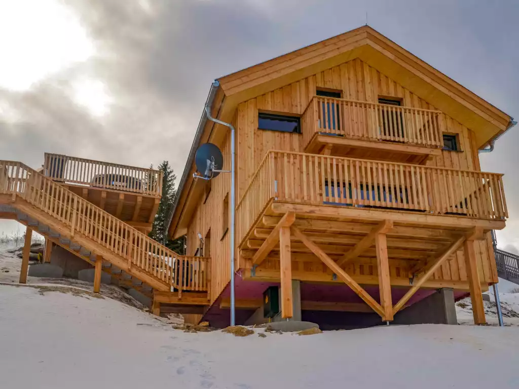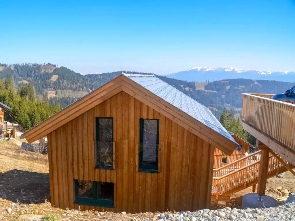 Klippitztörl: Cosy, comfortable chalet "Klippitzoase", 1'600 m a.s.l., 2 storeys. In the district of Kliening, in a sunny position on a slope, 600 m from the skiing area. For shared use: natural state property. Private: natural state property. In the house: WiFi, sauna, sun terrace. Bumpy motor access to the house (1 km via unmade road). In Winter: please take snow chains. Parking at the house. Grocery 15 km, restaurant 1 km, bus stop "Bad St. Leonhard Moosweg (West)" 14.9 km, bathing lake "Längssee" 35 km. Walking paths from the house 10 m, chair lift 600 m, slopes 300 m, ski rental 300 m, ski school 2 km, sled run 2 km. Nearby attractions: Sommerrodelbahn, Klettergarten 2 km. Hiking paths: Koralm, Saualm, Lavanttaler Alpen. Please note: car recommended. In case of good snow conditions, the house is accessible on skis. Self-service machine for food and everyday items in 500m. According to information from the provider, due to the geographical location on the mountain, WiFi reception cannot be guaranteed continuously and is highly dependent on the weather. Please note that the key handover takes place directly at the house.5-room chalet 100 m2. Partly with sloping ceilings, comfortable and cosy furnishings: entrance hall. Open living/dining room with dining table and satellite TV. Exit to the terrace. Open kitchen (oven, dishwasher, 4 ceramic glass hob hotplates, kettle, microwave, freezer, electric coffee machine, Capsules for coffee machine (Dolce Gusto) extra). Shower/WC, hydro massage shower. Top floor: 2 double bedrooms. Exit to the balcony. 1 double bedroom with 1 double bed. 1 double bedroom with 2 beds. Shower/WC, hydro massage shower, Sauna. Electric heating, underfloor heating. Small balcony, terrace. Terrace furniture. Marvellous panoramic view of the mountains and the countryside. Facilities: children's high chair, baby cot for up to 2 year olds, hair dryer. Please note: non-smoking house. Fire extinguisher. Object AT9462.102.1 is right next to it and is almost identically equipped. Due to the geographical location, WLAN can fail sometimes.