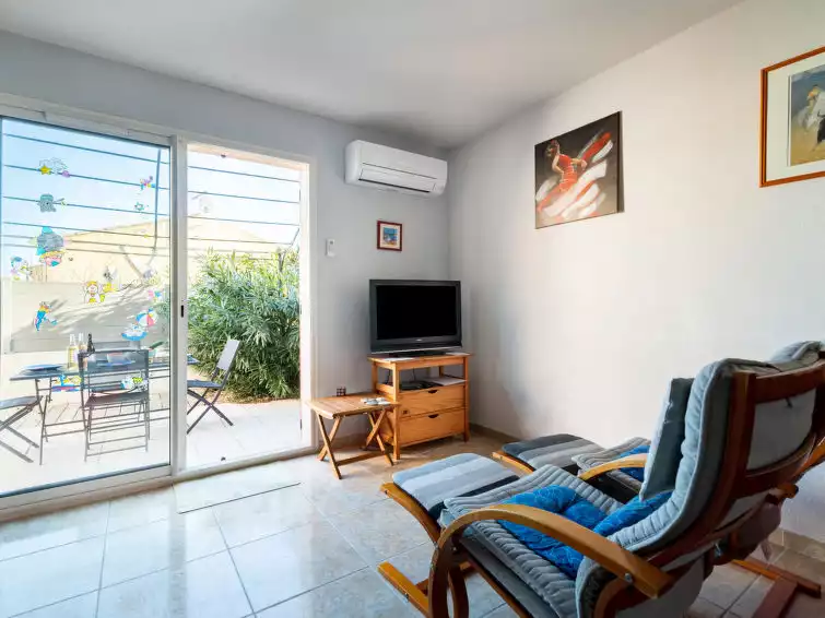 Terraced house "L'Abrivado". On the outskirts, 1.2 km from the centre of Aigues-Mortes, in a quiet position residential area (villas), 7 km from the sea. Shop 1 km, grocery 700 m, 20 minute walk to the centre, bus stop 1.3 km, railway station "Gare de Aigues-Mortes" 1.3 km, sandy beach "L'espiguette" 12 km, diving center 6 km, outdoor swimming pool 6 km, thermal baths "Les Bains de Camargue" 7 km. Sports harbour 9 km, surf school 9 km, tennis 6 km, riding stable 10 km. Nearby attractions: Seaquarium 6 km, Babyland 8 km, Arènes du Grau du Roi 6 km, Nîmes 47 km. Hiking paths: P13 Randonnées pédestres. Please note: car recommended. The keys‘ handover takes place by the agency PORT in CAMARGUE, 6 km."L'Abrivado", 3-room terraced house 50 m2. Object suitable for 2 adults + 2 children. Living/dining room with TV (flat screen), electric heating and air conditioning. Exit to the terrace. Open kitchen (2 ceramic glass hob hotplates, toaster, kettle, microwave, freezer, electric coffee machine). Sep. WC. Heating, air-conditioning. Upper floor: 1 room with 1 double bed (140 cm, length 190 cm). 1 children's room with 1 x 2 bunk beds (90 cm, length 180 cm). Bath/WC. Terrace 15 m2. Terrace furniture. Facilities: Internet (WiFi, free). Parking space n 43 (1 car) at the house. Please note: smoke alarm. Offer by a private individual according to Art. 155, IV of CGI. 16