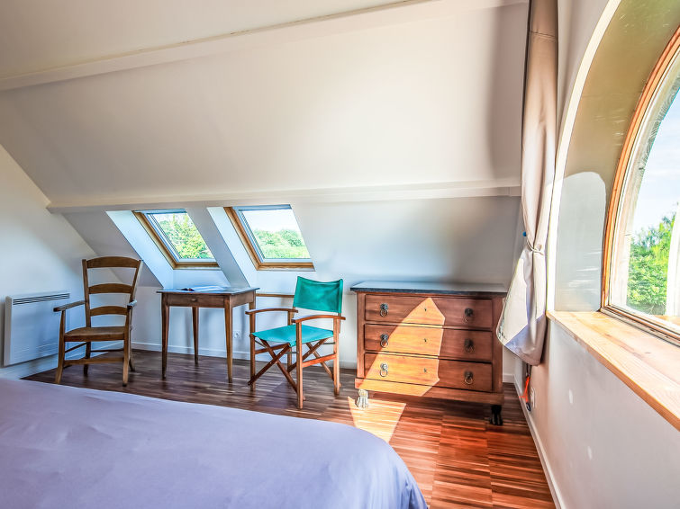 Modern, beautiful, comfortable timber house "L'Atelier", 2 storeys. 4 km from the centre of Locquirec, 8 km from the centre of Plestin-les-Grèves, 18 km from the centre of Morlaix, in a quiet position, 750 m from the sea, 750 m from the beach. For shared use: property 2'500 m2, well-kept garden (not fenced) with lawn and trees. Private: property 1'000 m2, beautiful, well-kept garden (not fenced) with lawn and wildlife garden, parking (for 2 cars) on the premises. Shop 4 km, grocery 2.5 km, supermarket 6 km, restaurant 4 km, bakery 2.5 km, café 2.5 km, bus stop 1.8 km, sandy beach "Poul Roudou" 750 m, diving center 18 km. Sports harbour 1.9 km, golf course (18 hole) 34 km, surf school 1.9 km, sailing school 5 km, walking paths from the house 20 m. Nearby attractions: Cairn de Barnenez 17 km, Lannion 26 km, Ploumanac'h - Côte du Granit Rose 40 km, Roscoff et Jardin Exotique 45 km, Vallée des Saints 45 km, Oceanopolis Brest 75 km. Hiking paths: GR34, sentier des douaniers 700 m. Please note: Additional accommodations can be booked. Property ref. FR2967.699.1 is situated on the same property."L'Atelier", 3-room house 65 m2 on 2 levels. Bright, modern and stylish furnishings: open living/dining room with dining table, satellite TV and international TV channels. Exit to the garden, to the terrace. Open kitchen (oven, dishwasher, 4 induction hot plates, microwave, electric coffee machine, Capsules for coffee machine (Senseo) extra). Shower/WC, double hand-basin. Upper floor: 1 room with sloping ceilings with 1 double bed (2 x 90 cm, length 200 cm). 1 room with sloping ceilings with 1 bed (90 cm, length 190 cm). Sep. WC. Solar energy heating. Wooden floors. Terrace. Terrace furniture, barbecue (portable), deck chairs (2). View of the sea and the garden. Facilities: washing machine, dryer, iron, children's high chair, baby cot, hair dryer. Internet (WiFi, free). Please note: non-smoking house. Smoke alarm.
