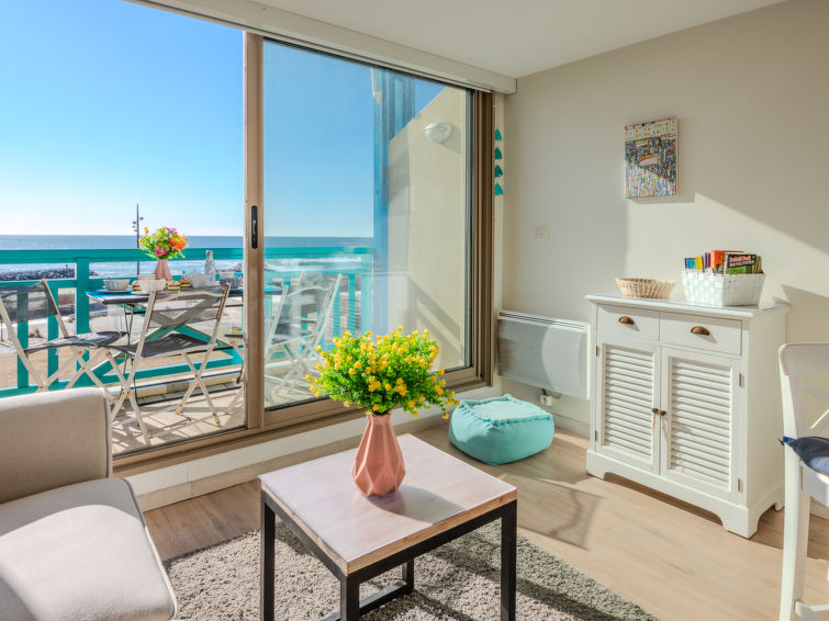 Mimizan-Plage: Residence "L'Oustalet", 3 storeys, built in 2008. 20 apartments in the residence. In the resort 250 m from the centre of Mimizan Plage, in a central, busy position, 100 m from the sea, 100 m from the beach. In the complex: storage room for bicycles. Shop 250 m, supermarket 600 m, bus stop 400 m, railway station "Labouheyre" 30 km, sandy beach 100 m, park "Landes Aventure" 6 km, indoor swimming pool 6 km, bathing lake "Aureilhan" 10 km. Golf course (9 hole) 6 km, surf school 400 m, riding stable 7 km. Nearby attractions: Aqualand Bassin Arcachon 70 km, Biscarosse 40 km, Casino Mimizan Plage. Please note: Additional accommodations can be booked.4-room apartment 60 m2 on 2 levels on 3rd floor. Beautiful and modern furnishings: living/dining room. Exit to the balcony. Lounge with TV and international TV channels (flat screen). Open kitchen (dishwasher, 3 ceramic glass hob hotplates, electric coffee machine, combination microwave). Shower/WC. Upper floor: 1 room with 1 french bed (1 x 160 cm, length 200 cm). 1 room with 2 beds (90 cm). Bathroom, sep. WC. Electric heating. Balcony, south-west facing position. Balcony furniture. Very beautiful view of the sea. Facilities: washing machine, dryer, iron. Internet (WiFi, free). Parking space n 1 (roofed). Please note: non-smokers only. 1 small pet/ dog allowed. Smoke alarm. The car park is in a small underground garage, ideal for a small size.