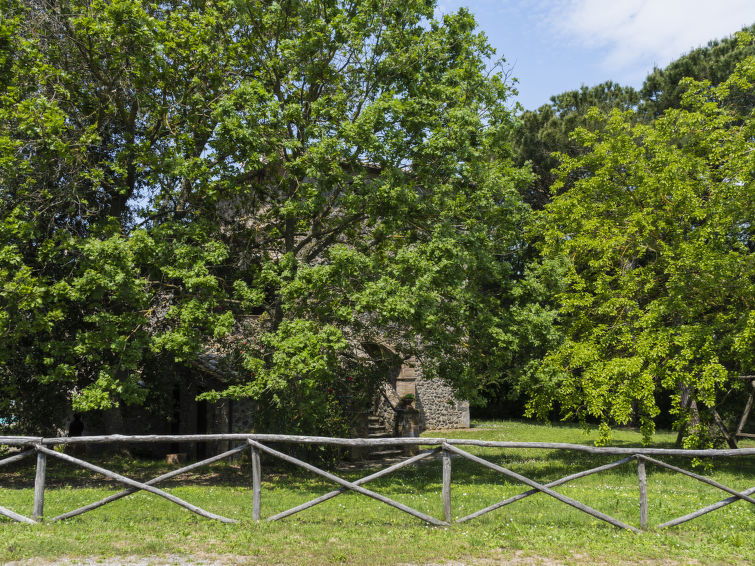 Country house "La Capraccia". 7 apartments in the residence. 10 km from the centre of Bolsena, 3 km from the centre of Bagnoregio, 100 km from the centre of Roma, 11 km from the lake, in the countryside. For shared use: property 20 ha, well-kept garden with lawn and trees, swimming pool (10 x 5 m, depth 120 - 150 cm, seasonal availability: 16.May. - 26.Sep. pool opening hours: 09:00-19:00). Outdoor shower, barbecue. In the house: washing machine (for shared use). 200 m long motor access (via unmade road). Parking on the premises. Shop 3 km, supermarket 3 km, bus stop 3 km, sandy beach "Lago di Bolsena" 12 km. Golf course (9 hole) 18 km. Please note: Additional accommodations can be booked."La Capraccia", 2-room house 42 m2. Rustic furnishings: living/sleeping room, on 2 levels with 1 double sofabed and satellite TV. 1 room with 1 french bed (160 cm), shower/WC and gas heating. Exit to the garden. Kitchenette (oven, 4 gas rings, kettle, electric coffee machine). Shower/WC. Gas heating. Patio. Terrace furniture. Facilities: safe, iron. Internet (WiFi, free). Please note: non-smoking house. Maximum 1 pet/ dog allowed. IT056003B55N8AGTOO