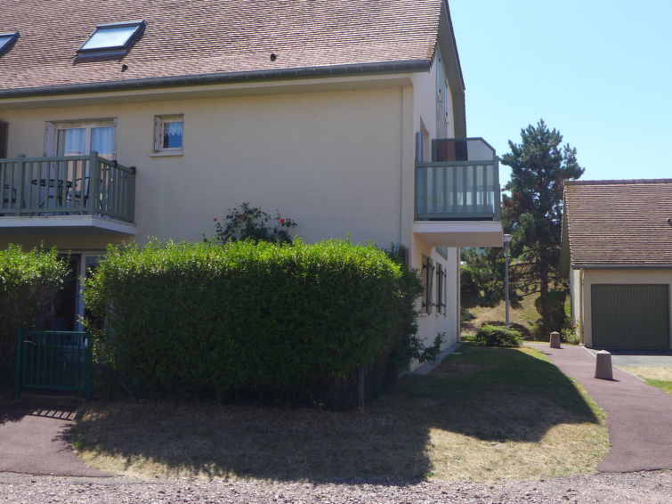 Merville Franceville 4 km from Cabourg: Residence "La Côte Fleurie", 2 storeys. In the resort 1 km from the centre of Merville Franceville Plage, 200 m from the sea, 200 m from the beach, direct access to the beach. Shop 1 km, grocery 1 km, supermarket 1 km, shopping centre 5 km, restaurant 200 m, bakery 1.2 km, bus stop "Route de Cabourg" 450 m, sandy beach 400 m, thermal baths "Thalazur" 5.1 km. Sports harbour 7.5 km, golf course (18 hole) 3 km, sailing school 8 km, tennis 1.1 km, minigolf 1.5 km. Please note: car recommended, no lift. The keys‘ handover takes place by the agency Interhome in Cabourg, 8 km.3-room apartment 38 m2, on the ground floor, south facing position. Living/dining room with TV (flat screen). Exit to the garden, to the terrace. 1 room with 1 french bed (140 cm, length 190 cm). 1 room with 2 pull-out beds (2 pers. 2 x 90 cm, length 190 cm). Kitchenette (dishwasher, 4 induction hot plates, toaster, kettle, microwave, electric coffee machine, Capsules for coffee machine (SENSEO) extra). Shower, sep. WC. Electric heating. Terrace, garden 13 m2. Terrace furniture. Facilities: washing machine. Internet (WiFi, extra). Parking space n 29. Please note: smoke alarm.