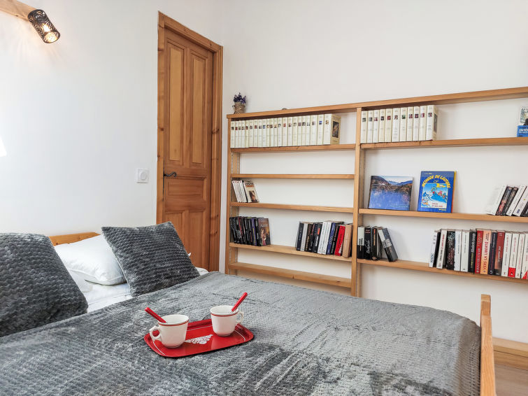 Residence "La Coupe de Cristal". In Winter: please take snow chains. Parking (limited number of spaces). Shop 500 m, restaurant 100 m, tram "du mont blanc" 30 m, bus stop "Le Pont" 450 m, railway station "Saint Gervais- Le Fayet" 4.3 km, outdoor swimming pool 1.9 km. Tennis 1.9 km, minigolf 1.9 km, sports centre 1.6 km, skisport facilities 1.8 km, ski bus stop 30 m, ice rink 1.5 km. Nearby attractions: Thermes de St Gervais (en voiture) 4.8 km, Thermes de St Gervais (à pied-ascenseur) 600 m. Well-known ski regions can easily be reached: Evasion Mont Blanc. Please note: ski bus (free of charge)."La coupe de Cristal", 3-room maisonette 60 m2 on 3rd floor. Partly with sloping ceilings: living/dining room with open-hearth fireplace (only for decoration), TV and flat screen. Exit to the balcony. Open kitchen (4 hot plates, dishwasher, toaster, kettle, microwave, electric coffee machine, raclette grill). Bathroom, sep. WC. Electric heating. Upper floor: 1 room with sloping ceilings with 1 sofabed (140 cm, length 190 cm), 1 x 2 bunk beds (90 cm, length 190 cm). 1 room with sloping ceilings with 1 french bed (140 cm, length 190 cm). Balcony, north-west facing position. Beautiful distant view. Facilities: washing machine. Internet (WiFi, free). Parking. Please note: non-smokers only. Smoke alarm, no lift. Offer by a private individual according to Art. 155, IV of CGI.