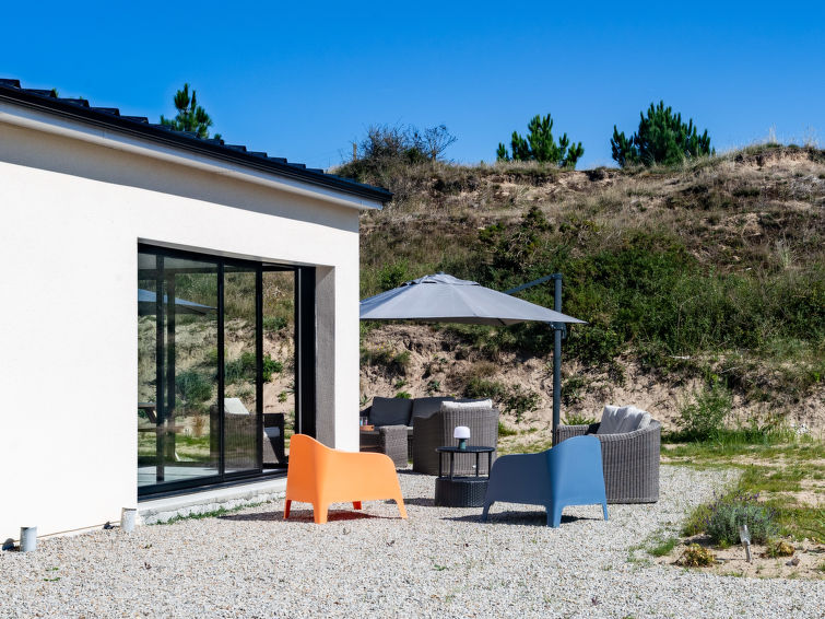 Modern, beautiful, comfortable house "La Dune". 500 m from the centre of Saint-German-sur-Ay, 13 km from the centre of La-Haye-du-Puits, in a quiet position, 400 m from the sea. Private: property 1'300 m2 (fenced) with lawn and wildlife garden. Outdoor shower, parking (for 2 cars) on the premises. Supermarket 500 m, restaurant, café 400 m, bus stop "Abbatiale" 9 km, sandy beach 400 m. Golf course (18 hole) 22 km. Nearby attractions: Cherbourg, Agon couatainville, Le Mont saint Michel, Granville."La Dune", 3-room house 100 m2. Beautiful and modern furnishings: living/dining room. Exit to the garden, to the terrace. Lounge. Open kitchen (oven, dishwasher, 1 induction hot plates, 4 gas rings, toaster, kettle, microwave, electric coffee machine, Capsules for coffee machine (Tassimo)). Sep. WC. Underfloor heating. Upper floor: 1 room with 1 french bed (1 x 140 cm, length 190 cm). 1 room with 1 french bed (160 cm, length 200 cm). Shower/WC. Terrace furniture, barbecue, deck chairs (4). Facilities: washing machine, dryer, baby cot for up to 2 year olds, hair dryer. Internet (WiFi, free). Parking (fenced 2 cars), garage. Please note: smoke alarm. Offer by a private individual according to Art. 155, IV of CGI. FR68770