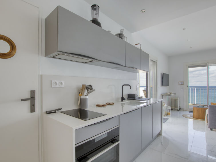Residence "La Kamarina", 3 storeys, renovated in 2022. 3 km from the centre of Sanary, on the outskirts, 2.5 km from the centre of Bandol, in a quiet position, at the seaside, direct access to the beach, south-west facing position. Parking space n 12. Grocery 1 km, restaurant 200 m, bus stop 500 m, sandy beach 20 m (small). Golf course (18 hole) 6 km. Nearby attractions: Aqualand 10 km. Hiking paths: Sainte Baume,Sainte Victoire,Calanque, Cassis,Porquerolles,Ile verte,Embiez. Residence with electric gates. The keys‘ handover takes place by the agency Interhome in SIX FOURS LES PLAGES, 5 km. The residence is located on the seafront. Access to the small beach is via a private path with many steps. Attention vehicle height limited to 2.20m to access the residence., The facade of the residence was renovated in 2023.2-room apartment 32 m2 on 3rd floor. Bright, fully renovated in 2020, comfortable and beautiful furnishings: living/dining room with 1 double sofabed (1 x 140 cm, length 200 cm), TV (flat screen). Exit to the terrace. 1 room with 1 french bed (140 cm, length 190 cm). Exit to the terrace. Kitchenette (oven, dishwasher, 2 induction hot plates, toaster, kettle, freezer, electric coffee machine, combination microwave). Shower/WC. Electric heating. Terrace 25 m2, south facing position and west facing position. Terrace furniture, electric barbecue. Panoramic view of the sea. Facilities: washing machine. Internet (WiFi, extra). Parking space n 12 (1 car). Please note: smoke alarm. 83123000303ZA