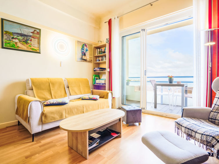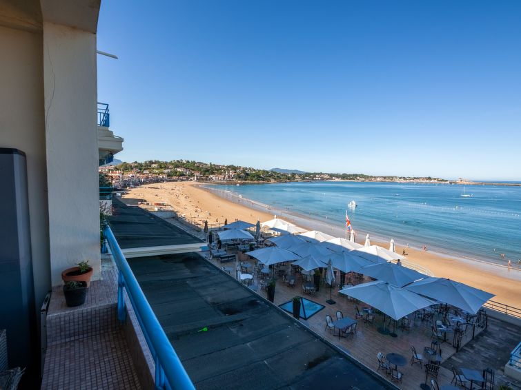 Residence "La Pergola", 5 storeys. In the centre of Saint Jean de Luz, 20 m from the sea, 20 m from the beach. In the complex: lift. Public car park at 50 m. Shop 50 m, grocery 100 m, restaurant 50 m, bakery 100 m, café 50 m, 2 minute walk to the centre, bus stop 5 m, railway station "Saint Jean de Luz" 1 km, sandy beach "Saint Jean de Luz" 20 m, thermal baths "héliantal" 40 m. Golf course (18 hole) 5 km, surf school 550 m. Nearby attractions: JOA Casino 10 m, Marché des Halles 450 m, Parc Duconténia 650 m, Pointe de Sainte Barbe 1.4 km. Hiking paths: La Rhune 19 km. Please note: Additional accommodations can be booked. This residence was build in 1928 by Robert Mallet Stevens. Ideally placed for stays in Thalassotherapy.2-room apartment 44 m2 on 1st floor. Comfortable and beautiful furnishings: living/dining room with 1 double sofabed, TV and flat screen. Exit to the balcony, west facing position. 1 room with 1 french bed and shower/WC. Small kitchen (4 hot plates, dishwasher, microwave, freezer, grill). Sep. WC. Electric heating. Small balcony 6 m2. Marvellous view of the sea. Facilities: washing machine. Internet (WiFi, extra). Please note: smoke alarm. The bedroom windows face onto a small courtyard.