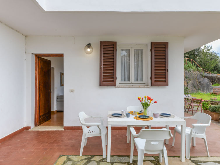 2-family house "la Roccia". 4 apartments in the property. 500 m from the centre of Cavo, in a quiet, sunny position, 50 m from the sea, 50 m from the beach, road to cross. For shared use: garden with lawn, parking at the house. Grocery 500 m, supermarket 3 km, restaurant 500 m, bus stop 210 m, sandy beach 100 m (small). Nearby attractions: Rio Marina 7 km, Porto Azzurro 18 km, Portoferraio 25 km. Please note: Loading and unloading of baggage is possible at the holiday house.3-room apartment 65 m2, on the ground floor. Simple furnishings: living/dining room with satellite TV. Exit to the patio. 1 double bedroom. 1 room with 1 bed and 1 double bed. Kitchenette (oven, 4 gas rings). Shower/bidet/WC. Patio. Barbecue, sitting area. Very beautiful view of the sea. Parking (fenced 1 car) at the house. Please note: private entrance.