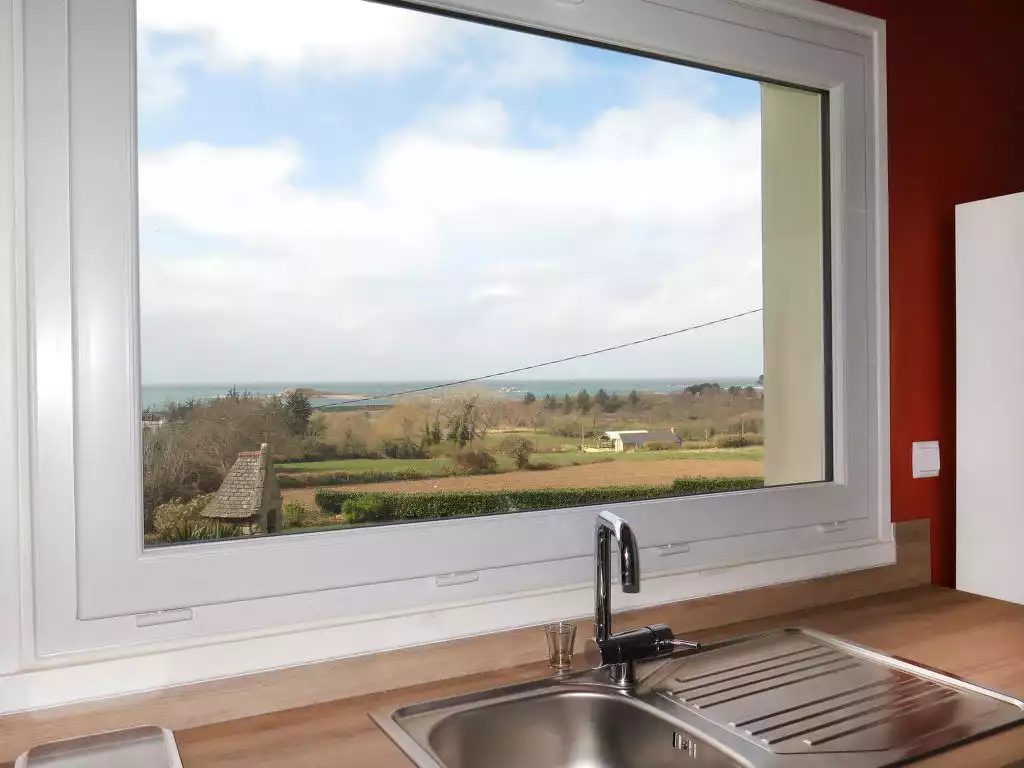 Beautiful single-family house "La Rotonde", surrounded by trees and fields. 1.5 km from the centre of Port-Blanc, 1.5 km from the centre of Trévou-Tréguignec, 5 km from the centre of Penvénan, 1.5 km from the sea. Private: garden 5'000 m2 (fenced) with wildlife garden and trees, meadow, parking on the premises, single garage. Grocery 1.5 km, restaurant 1.5 km, bus stop 3 km, sandy beach 1.5 km."La Rotonde", 6-room house 200 m2 on 2 levels. Beautiful and cosy furnishings: living/dining room with veranda with open-hearth fireplace, dining table and satellite TV. Exit to the veranda. 1 room with 1 french bed (140 cm). Kitchen (oven, dishwasher, 4 ceramic glass hob hotplates, toaster, kettle, microwave, freezer, electric coffee machine) with small dining table. Bathroom, sep. WC. Upper floor: 1 room with sloping ceilings with 1 french bed (160 cm, length 190 cm). 1 room with sloping ceilings with 1 french bed (140 cm). 1 room with sloping ceilings with 1 bed. 1 room with sloping ceilings with 1 bed (120 cm). Shower/WC. Oil heating. Terrace 16 m2, terrace 12 m2. Terrace furniture, barbecue (portable), deck chairs (8). Marvellous view of the sea. Facilities: washing machine, children's high chair, baby cot, hair dryer. Internet (WiFi, free). Please note: non-smoking house. Smoke alarm.