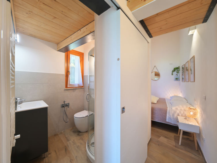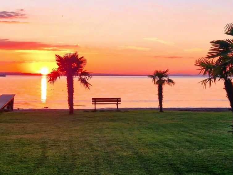 Modern, comfortable chalet "La Spiaggia", detached, renovated in 2024. 2 km from the centre of San Feliciano, 10 m from the lake, direct access to the beach. Private: garden 2'500 m2. Private beach, garden furniture, parking on the premises. Grocery 1 km, supermarket 1 km, restaurant 1 km, bar 1 km, bus stop 270 m, railway station "Magione" 7 km, ferry 2 km. Marina 1 km. Nearby attractions: Passignano Sul Trasimeno 12 km, Castiglione Del Lago 23 km, Perugia 26 km, Cortona 32 km, Assisi 50 km. Please note: car recommended. The owner does not accept any youth groups.5-room chalet 110 m2 on 2 levels. Comfortable and modern furnishings: living/dining room with kitchen corner and TV (flat screen). Living room with veranda. Exit to the garden. 1 room with 1 bed, 1 double bed and shower/bidet/WC. 1 double bedroom with shower/bidet/WC. Kitchenette (oven, dishwasher, toaster, kettle, microwave, electric coffee machine, Capsules for coffee machine (nespresso)). Gas heating, air-conditioning. Heating available only from 08.11. to 07.04. Upper floor: gallery with TV (flat screen). Marvellous view of the lake. Facilities: washing machine, mosquito net, hair dryer. Internet (WiFi). Please note: non-smoking house. 1 small pet/ dog allowed. IT054026C202033118