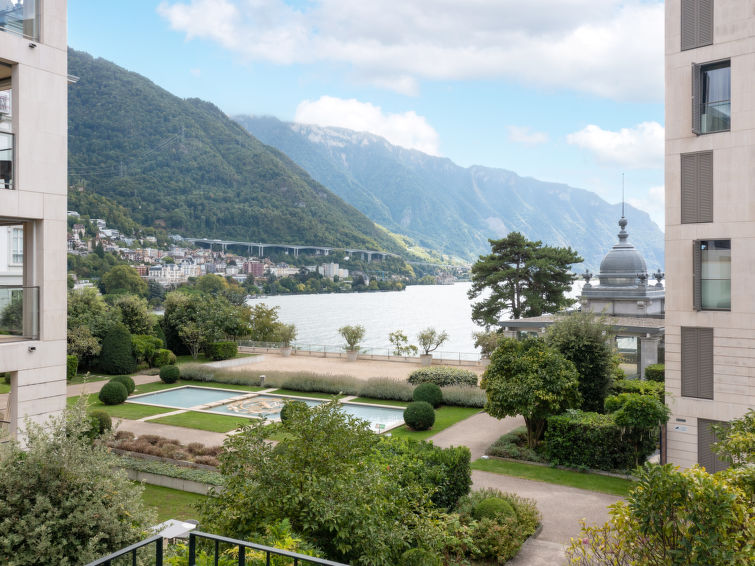 Modern residence "Le National Montreux". In the resort, in the heart of the city. For shared use: swimming pool heated (3 x 10 m, depth 160 - 160 cm, seasonal availability: 01.Jan. - 31.Dec. pool opening hours: 07:00-22:00). Shower/WC in the pool area. In the house: sauna, fitness room, relaxation room hamam, lift, central heating system. Linen change weekly (suppl. charge extra). Towel change weekly (suppl. charge extra). Room cleaning weekly on request (extra). Communal covered parking. Dimension: height 195 cm. Supermarket 400 m, shopping centre 350 m, restaurant 300 m, café 350 m, bus stop "Bon Port" 130 m, railway station "Montreux", ferry 700 m, outdoor swimming pool 5 km, lake Lac Léman 50 m. Golf course (18 hole) 15 km, tennis 950 m, minigolf 1.1 km. Nearby attractions: Château de Chillon 2.4 km, Montreux Jazz Festival 1.4 km, Musée Olympique Lausanne 27 km, Swissvapeur Parc / Aquaparc Bouveret 16 km, Chaplin's World Vevey 9.3 km. Well-known ski regions can easily be reached: Leysin, Villars, Portes-du-Soleil. Well-known lakes can easily be reached: Lac Léman. Hiking paths: Rochers de Naye. Please note: guarded residence. Residence with electric gates. Main road close by. Neighbourhood highly sensitive to noise. Quietness and good behaviour expected."La Terrasses C2.5", 2-room apartment 72 m2. Luxurious and tasteful furnishings: living/dining room with panoramic window with cable TV, international TV channels, air conditioning and electric shutters. Exit to the terrace. 1 room with 1 double bed (180 cm, length 200 cm), bath/WC and air conditioning. Exit to the terrace. Open kitchen (dishwasher, 4 ceramic glass hob hotplates, toaster, kettle, microwave, freezer, electric coffee machine, Capsules for coffee machine (Nespresso) extra, raclette grill, fondue Set (chinoise, cheese)). Sep. WC, double hand-basin. Electric heating. Terrace 10 m2. Terrace furniture. Marvellous view of the lake, the mountains, the countryside and the resort. Facilities: washing machine, dryer, iron, hair dryer. Internet (WiFi, free). Garage space n 165 on the property, height 190 cm. Please note: non-smokers only, parking space for small car only.