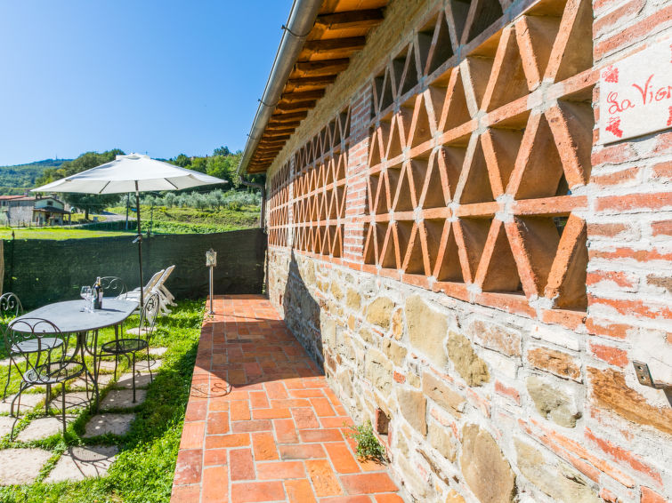 Large, rustic on a vinyard country house "Fattoria l'Ottavo", 400 m a.s.l., from the 18th century, renovated, surrounded by meadows and vineyards. 3 houses in the residence. 9 apartments in the residence. In the district of Lucolena in Chianti 12 km from the centre of Greve in Chianti, 13 m from the centre of Figline Valdarno, in a secluded, sunny, elevated position, in the countryside. For shared use: property 40 ha, natural garden, meadow, swimming pool fenced (8 x 4 m, seasonal availability: 01.May. - 15.Oct. pool opening hours: 08:00-20:00). Outdoor shower, terrace, garden furniture, barbecue, pool maintenance by the owner/gardener. In the house: reception, restaurant, breakfast room, WiFi, washing machine (for shared use). Linen change weekly. Breakfast possible on request (extra). 200 m long narrow motor access to the grounds. Parking on the premises. Shop 700 m, grocery 700 m, supermarket 12 km, shopping centre 13 km, restaurant 1 km, bar 700 m, bakery 700 m, bicycle rental 12 km, bus stop "Lucolena" 700 m, railway station "Figline Valdarno" 13 km, sandy beach "Calambrone" 110 km, indoor swimming pool 13 km, lake Trasimeno 114 km. Golf course (18 hole) 20 km, tennis 12 km, riding stable 2 km, walking paths from the house 100 m. Nearby attractions: Firenze 37 km, Siena 50 km, Arezzo 54 km, San Gimignano 65 km. Please note: car recommended. Reception open 10:00-17:00 hrs. Suitable for families, baby equipment (included). Suitable for events. Local sale of farm products. Please note: the owner lives on the same property. All houses/apartments are individually designed/furnished."La Vigna", 3-room house 53 m2, on the ground floor. Spacious, practical and rustic furnishings: living/dining room with dining table, dining nook and TV (flat screen). 2 double bedrooms, each room with shower/WC. Open kitchen (oven, Gas stove, 4 gas rings). Gas heating. Natural stone floors. Terrace, large patio, garden. Terrace furniture, barbecue, deck chairs. Beautiful view of the countryside. Facilities: safe, mosquito net, children's high chair, baby cot for up to 2 year olds, hair dryer. Internet (WiFi, free). Parking (2 cars) at the house. Please note: non-smokers only. Maximum 1 pet/ dog allowed. Private entrance. IT048021B55OHRV878