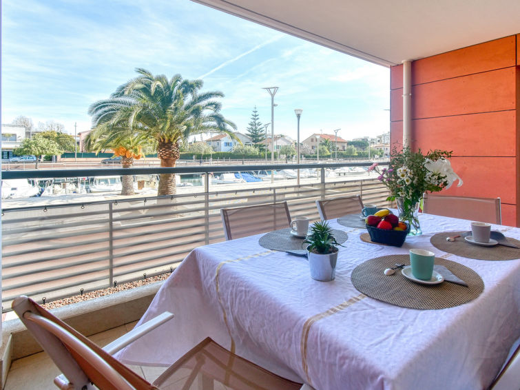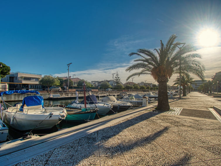 Port Fréjus II 3 km from Saint Raphaël: Beautiful residence "Le 4 Mats", 5 storeys, built in 2015. In a quiet position, 1 km from the sea, 1 km from the beach, 10 m from the canal. Supermarket 1.5 km, restaurant 1 km, bar 1 km, bakery 1.5 km, bus stop "Fougasses" 400 m, railway station "Saint-Raphaël Valescure" 3 km, sandy beach "Fréjus" 1 km, diving center 600 m. Sports harbour 50 m, golf course (18 hole) 8 km. Nearby attractions: Cannes 40 km, Saint-Tropez 40 km, Nice 70 km, Gorges du Verdon 90 km. Well-known lakes can easily be reached: Saint Cassien 30 km, Sainte Croix 90 km. Hiking paths: Estérel 10 km. The keys‘ handover takes place by the agency Interhome in Port Fréjus, 2 km.2-room apartment 53 m2, on the ground floor. Comfortable and modern furnishings: living/dining room with TV. Exit to the terrace. Alcove with 1 double sofabed (140 cm, length 200 cm). Exit to the terrace. 1 room with 1 french bed (1 x 160 cm, length 200 cm). Open kitchen (oven, dishwasher, 2 induction hot plates, freezer, electric coffee machine) with electric heating. Shower, sep. WC. Air-conditioning. Terrace 11 m2. Terrace furniture. View of the canal. Facilities: washing machine, dryer, iron. Internet (WiFi, extra). Garage space n 41, height 200 cm, width 260 cm. Please note: non-smokers only. Smoke alarm. Instead of an enclosed bedroom, some sleeping areas are located in an open-plan area (gallery, alcove, etc.).