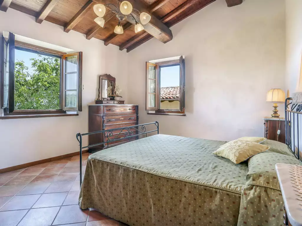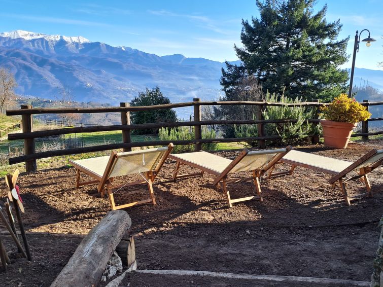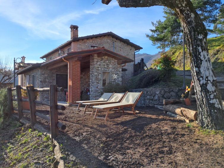 Molazzana 8 km from Casteln. di Garfagnana: Country house "Le Bore", 700 m a.s.l., surrounded by trees and meadows. 2 houses in the resort. 8 km from the centre of Castelnuovo di Garfagnana, 47 km from the centre of Lucca, 64 km from the centre of Pisa, in a secluded, quiet position on a slope, 74 km from the sea, in the countryside. For shared use: property 50'000 m2 (fenced), small garden with lawn and plants, natural garden, meadow, swimming pool (12 x 6 m, seasonal availability: 01.May. - 01.Oct.). Shower/WC in the pool area, outdoor shower, barbecue. In the house: washing machine (for shared use). 600 m long narrow motor access (mountain road). Parking on the premises. Shop 5 km, supermarket 8 km, bus stop 500 m, sandy beach "Lido di Camaiore" 74 km. The owner does not accept any youth groups. Local sale of farm products."Le Bore (CNG122)", 5-room house 138 m2 on 2 levels. Object suitable for 6 adults + 4 children. Rustic furnishings: living/sleeping room with 1 double sofabed, open-hearth fireplace, dining table, satellite TV and international TV channels. Living/sleeping room with 1 double sofabed, open-hearth fireplace, dining nook, kitchen corner, satellite TV and international TV channels. 2 rooms, each room with 1 french bed (160 cm). 1 room with 2 beds. Small, open kitchen (4 hot plates, oven, dishwasher, freezer, electric coffee machine). 2 showers/WC. Gas heating. Terrace, patio. Terrace furniture, barbecue. Panoramic view. Facilities: iron. Internet (WiFi, free). Please note: non-smokers only. No internal connecting door between the separated properties. IT046020B5P4VEN2QT