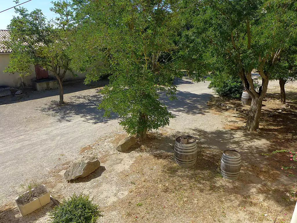 The "Castle of Karantes" is a working wine estate in the heart of the "Massif de la Clape", in the Guarrigue. 44 hectares of vines in the "Languedoc-la Clape" appellation overlooking the sea and the fine sandy beach. 4 cottages share this magical place which offers a magnificent panorama. Beautiful large working farm "Le Chais", surrounded by vineyards. Above Narbonne-plage, in a quiet, sunny, elevated position, 2 km from the sea. For shared use: natural state property. Garden furniture, parking on the premises. Shop 3 km, grocery 3 km, supermarket 15 km, restaurant 3 km, 10 minute walk to the centre, bus stop 2 km, sandy beach 2 km, diving center 3 km. Sports harbour 3 km, riding stable 6 km. Nearby attractions: Cité de Carcassonne 73 km, Réserve Africaine de Sigean 33 km, Espace balnéoludique de Gruissan 8 km. The keys‘ handover takes place by the agency Interhome in Narbonne Plage, 3 km.3-room apartment 90 m2, on the upper ground floor. Spacious, very beautiful furnishings: living/dining room with satellite TV (flat screen), DVD. 1 room with 2 beds (90 cm). 1 room with 1 french bed (1 x 140 cm). Large, open kitchen (2 hot plates, dishwasher, microwave). Bathroom, sep. WC. Electric heating. Terrace furniture. Facilities: washing machine. Parking at the house. Please note: maximum 1 pet/ dog allowed. Smoke alarm. WIFI not available. Please note: Wine estate in operation. Offer by a private individual according to Art. 155, IV of CGI.