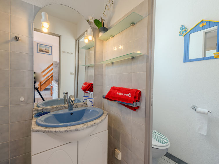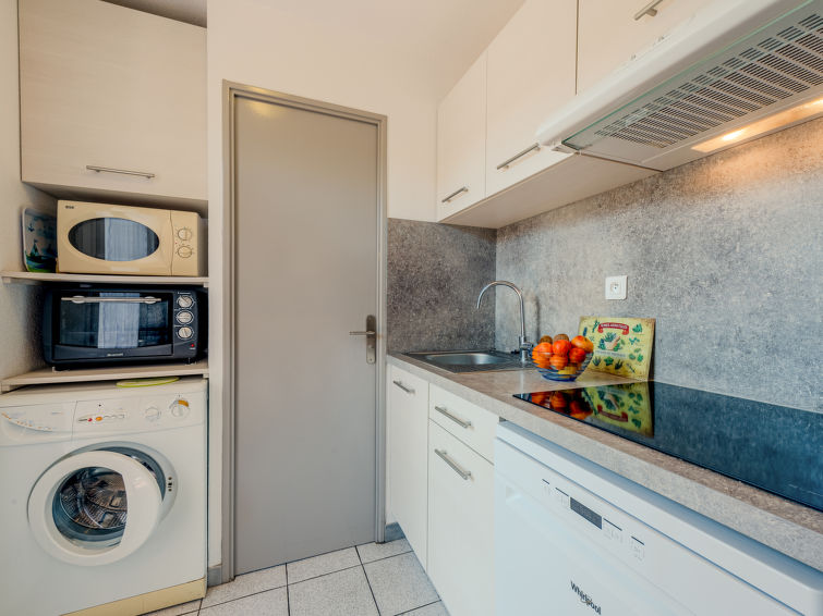 Residence "Le Clos de St Cyprien". In the centre of Saint Cyprien Port, in a central, busy position, 500 m from the sea, 500 m from the beach, on a main road. For shared use: swimming pool (seasonal availability: 15.Jun. - 15.Sep.). Children's pool, tennis, children's playground. Shop 400 m, supermarket 500 m, restaurant 400 m, bus stop 300 m, railway station "Elne" 8.3 km, sandy beach "Plage du Port" 500 m. Sports harbour 400 m, golf course (27 hole) 3.5 km, sailing school 2 km, minigolf 2.2 km, riding stable 1.3 km, sports centre 2.5 km. Nearby attractions: Aqualand 4.4 km.3-room terraced house 50 m2 on 2 levels. Living/dining room with 1 double sofabed. Exit to the garden, to the terrace. 1 room with 1 french bed (140 cm, length 190 cm), fan. Kitchenette (3 hot plates, oven, dishwasher, microwave, freezer). Shower/WC. Air-conditioning. Upper floor: 1 room with 1 french bed (140 cm, length 190 cm), fan. Terrace 12 m2, patio 15 m2. Barbecue. Facilities: washing machine. Internet (WiFi, extra). Parking space n 83 extérieur. Please note: smoke alarm.