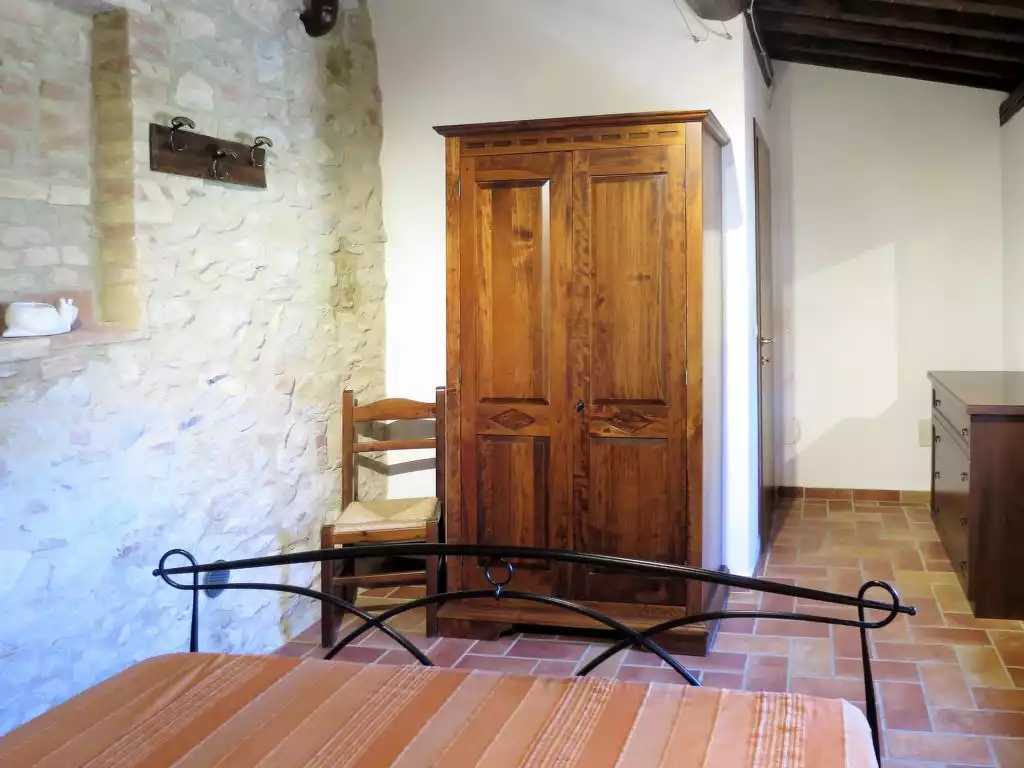 Agricultural estate "Le Colmate", detached. 4 apartments in the residence. 6.5 km from the centre of Guardistallo, 21.5 km from the centre of Cecina, 65 km from the centre of Pisa, in a sunny position on a slope, 12 km from the sea, in the countryside. For shared use: property with lawn and trees, swimming pool kidney-shaped (10 x 4 m, seasonal availability: 30.May. - 30.Sep.). Outdoor shower, barbecue. Motor access (200 m via unmade road). Parking on the premises. Shop 6.5 km, bus stop 2 km, sandy beach "Marina di Cecina" 12 km. On the estate animal husbandry. Please note: the owner lives on the same property. The owner has a dog."Le Colmate", 2-room apartment 45 m2, on the ground floor. Simple and rustic furnishings: living/sleeping room with 1 sofabed, open-hearth fireplace and dining table. 1 room with 1 french bed (160 cm). Open kitchen (oven, 4 gas rings, kettle). Shower/WC. Patio. Facilities: baby cot for up to 2 year olds (extra). Internet (WiFi). Please note: maximum 1 pet/ dog allowed. Private entrance. IT050019B5AWG7MVYF