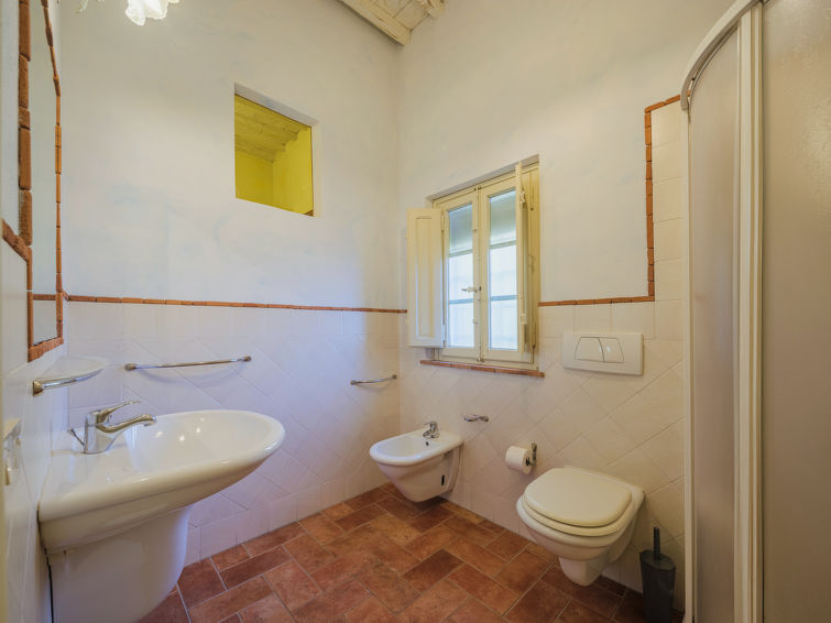 San Michele di Moriano: Very beautiful country house "Le Fornaci", surrounded by trees, meadows and fields. 7 apartments in the residence. 500 m from the centre of San Michele di Moriano, on the outskirts, 4.5 km from the centre of Ponte a Moriano, 6 km from the centre of Lucca, in a quiet, sunny position, 35 km from the sea, in the countryside. For shared use: property 700 m2 (fenced), well-kept garden with plants and trees, meadow, orchard, swimming pool (12 x 6 m, depth 100 - 140 cm, seasonal availability: 16.May. - 10.Oct. pool opening hours: 08:00-20:00). Table tennis, boccia, garden furniture. In the house: lounge with TV, table football, central heating system, air conditioning, washing machine (for shared use), heating to be paid on the spot (28.Mar. - 31.Oct.), heating available only from 01.Nov. - 27.Mar., bicycles available. 200 m long motor access (via unmade road). Parking on the premises. Supermarket 2.7 km, bus stop 1 km, sandy beach "Viareggio" 35 km. Nearby attractions: Pisa 26 km, Collodi Pinocchio Park 18 km, Viareggio 33 km, Montecatini Terme 38 km, San Giuliano Terme 20 km, Firenze 82 km. Well-known lakes can easily be reached: Torre del Lago 35 km, Lago di Massaciuccoli 25 km. Hiking paths: Antro del Corchia Levigliani 57 km, Botri Canyion dell´Orrido 34 km, Grotta del Vento Fabbriche di Vergemoli 42 km. Please note: car recommended. Local sale of farm products."Il Magazzino", 1-room apartment 35 m2, on the ground floor. Renovated, beautiful and tasteful furnishings: living/sleeping room with 1 french bed (160 cm), 1 sleeping facility, dining table and TV. Small, open kitchen (4 gas rings, toaster, microwave, electric coffee machine). Shower/WC. Gas heating (extra), air-conditioning (extra). Terrace. Terrace furniture. Facilities: baby cot for up to 2 year olds. Internet (WiFi, free). Parking at the house. Please note: non-smokers only. Private entrance, smoke alarm, fire extinguisher. IT046017B5UDWT7VXO
