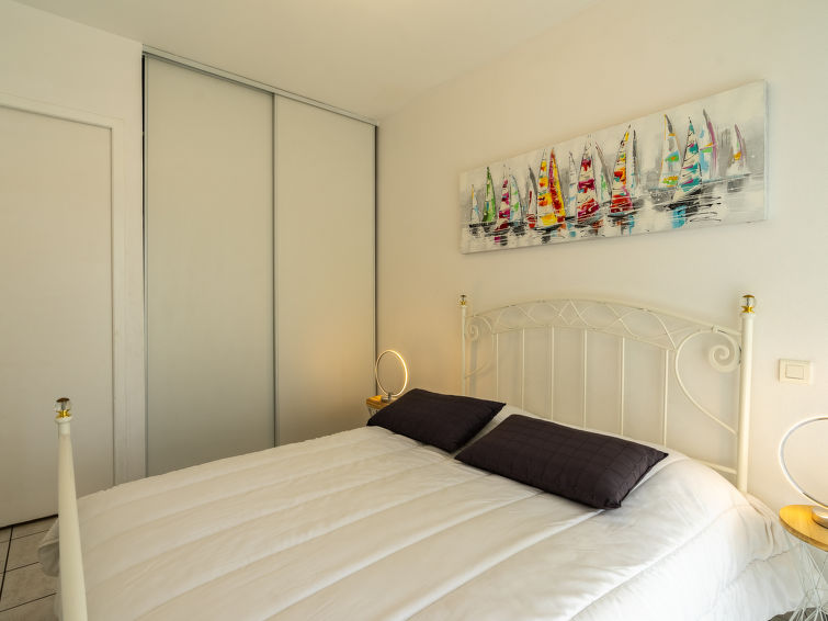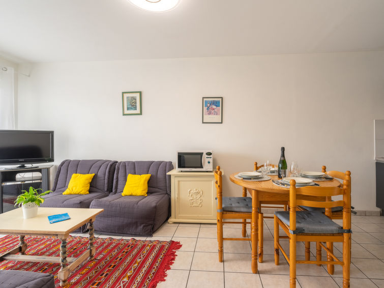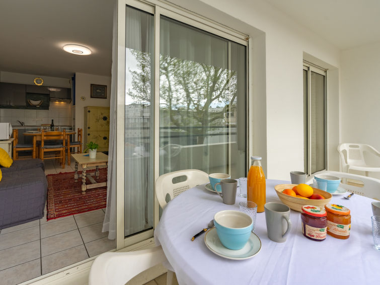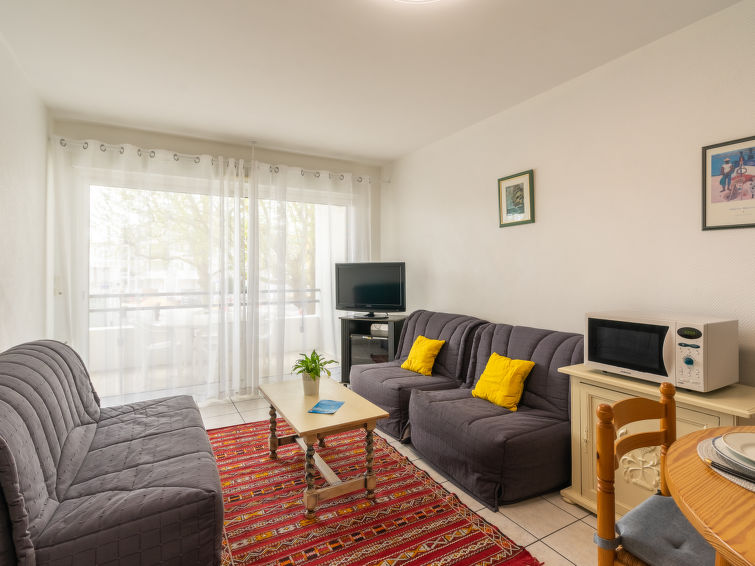 Residence "Le Forum", 3 storeys, built in 1990. 15 apartments in the residence. In the centre of Royan, 200 m from the sea, 200 m from the beach. In the house: lift. Shop 150 m, supermarket 350 m, restaurant 200 m, bakery 150 m, café 200 m, bus stop "Poste" 220 m, railway station "Royan" 600 m, sandy beach "Royan - La Grande Conche" 200 m, park "Luna Park (Juillet - Août)", outdoor swimming pool 450 m, thermal baths "Thalassothérapie Thalazur Royan" 2 km. Sports harbour 1 km, golf course (18 hole) 8 km, surf school 3 km, sailing school 1 km. Nearby attractions: Embarcadère Royan vers Le Verdon 1.3 km, Zoo de La Palmyre 14 km, Centre aquatique Iléo - Ile d'Oléron 44 km, Fort Boyard - Fouras 53 km, Aéroport La Rochelle - Ile de Ré 77 km, Aéroport Bordeaux - Mérignac 104 km. The keys‘ handover takes place by the agency Interhome in Vaux sur Mer, 3 km.2-room apartment 37 m2 on 1st floor. Living/dining room 20 m2 with 1 double sofabed (1 x 140 cm, length 190 cm), TV. Exit to the terrace. 1 room with 1 french bed (1 x 140 cm, length 190 cm). Kitchenette (2 hot plates, dishwasher, electric coffee machine, combination microwave). Shower, sep. WC. Electric heating. Terrace 11 m2. Terrace furniture. Facilities: washing machine. Internet (WiFi, extra). Garage. Please note: smoke alarm. Garage dimensions: Height: 190cm - Width: 230cm - Length: 380cm. 173060004837S