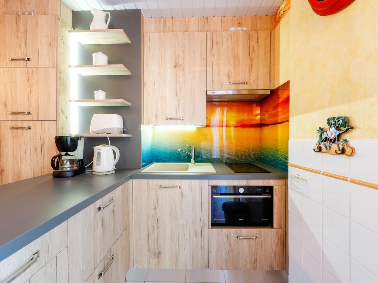 Residence "Le Génois". In the district of Mont Saint Martin, 1.4 km from the centre, 1 km from the sea, 1 km from the beach. In the complex: storage room for bicycles. Parking. Shop 100 m, supermarket 3 km, shopping centre, bakery 100 m, bus stop "Golf International" 270 m. Sports harbour 1 km, golf course (27 hole) 800 m. Nearby attractions: Aqualand 400 m, Ile des Loisirs 1.2 km. Please note: no lift.2-room apartment 35 m2 on 1st floor, east facing position. Practical furnishings: living/dining room with 1 double sofabed (140 cm, length 190 cm), TV (flat screen). 1 room with 1 french bed (140 cm, length 190 cm). Kitchenette (2 hot plates, toaster, kettle, freezer, electric coffee machine, combination microwave). Shower/WC. Facilities: Internet (WiFi, extra). Parking space n 184. Please note: apartment carpark side. Smoke alarm.