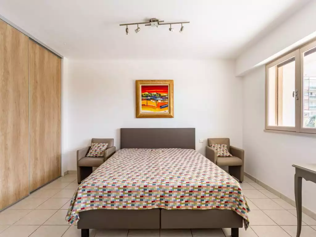 Le Lavandou: Apartment house "Le Grand Large", 9 storeys. In the centre of Lavandou, 20 m from the sea, 20 m from the beach, road to cross. In the house: lift. Parking (limited number of spaces). Shop 50 m, grocery 200 m, supermarket 500 m, restaurant 50 m, bakery 80 m, café 50 m, internet café 200 m, bicycle rental 100 m, bus stop "Lavandou Gare routière" 400 m, sandy beach 20 m. Sports harbour 700 m, minigolf 500 m. Nearby attractions: Magic World 24 km. The keys‘ handover takes place by the agency Interhome in Le Lavandou.1-room studio 52 m2, on the upper ground floor. Spacious, comfortable furnishings: living/dining room with 1 double sofabed (140 cm, length 190 cm), TV (flat screen). Open large sleeping alcove with 1 french bed (160 cm, length 200 cm). Open kitchen (4 ceramic glass hob hotplates, toaster, kettle, microwave, electric coffee machine). Shower, sep. WC. Air-conditioning. No heating option. Partial view of the sea. Facilities: iron, children's high chair, baby cot, hair dryer. Internet (WiFi, extra). Please note: apartment courtyard side. Non-smokers only, no parking. TV only FR. Smoke alarm. Instead of an enclosed bedroom, some sleeping areas are located in an open-plan area (gallery, alcove, etc.). Offer by a private individual according to Art. 155, IV of CGI. 83070001652J5