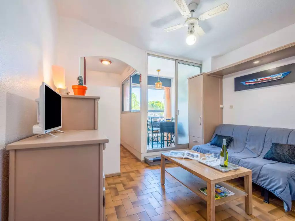 Residence "Le Liberté", 3 storeys. In the centre of Saint Cyprien, 300 m from the sea, 300 m from the beach, on a main road. Shop 200 m, supermarket 950 m, restaurant, bar 450 m, bus stop 300 m, railway station "Elne" 8 km, sandy beach "Plage du Port" 300 m. Sports harbour 450 m, golf course (27 hole) 3 km, sailing school 2.4 km, minigolf 1.6 km, riding stable 1.7 km, sports centre 3 km. Nearby attractions: Aqualand 4.3 km. Please note: no lift.1-room studio 22 m2 on 1st floor. Living/dining room with 1 double sofabed (140 cm, length 190 cm), TV (flat screen). Exit to the loggia. Alcove with 1 bed (120 cm, length 190 cm). Kitchenette (2 hot plates, mini-oven, microwave, electric coffee machine). Shower/WC. Covered balcony. Facilities: washing machine. Internet (WiFi, extra). Parking (fenced) at 200 m. Please note: smoke alarm. Instead of an enclosed bedroom, some sleeping areas are located in an open-plan area (gallery, alcove, etc.).