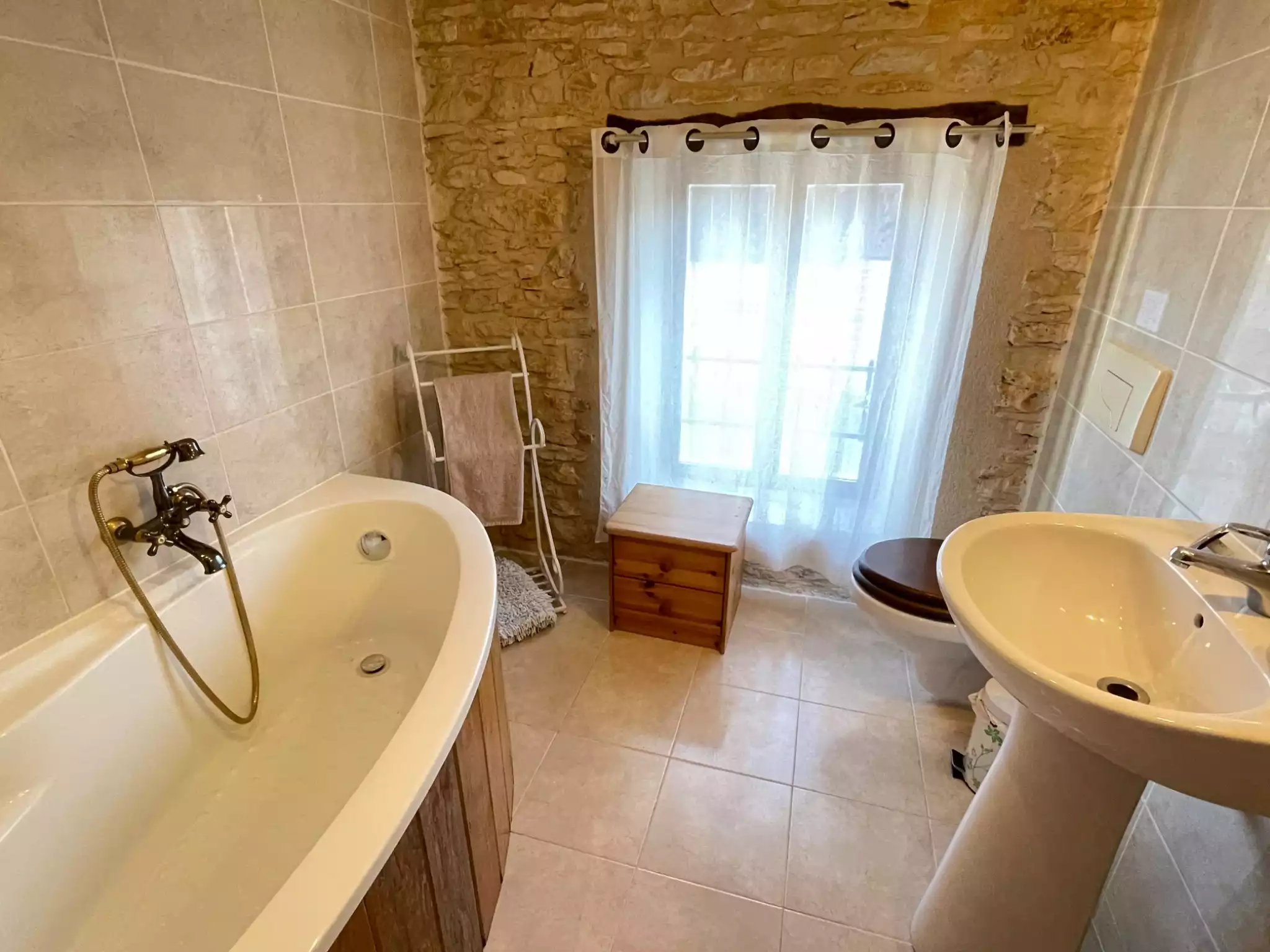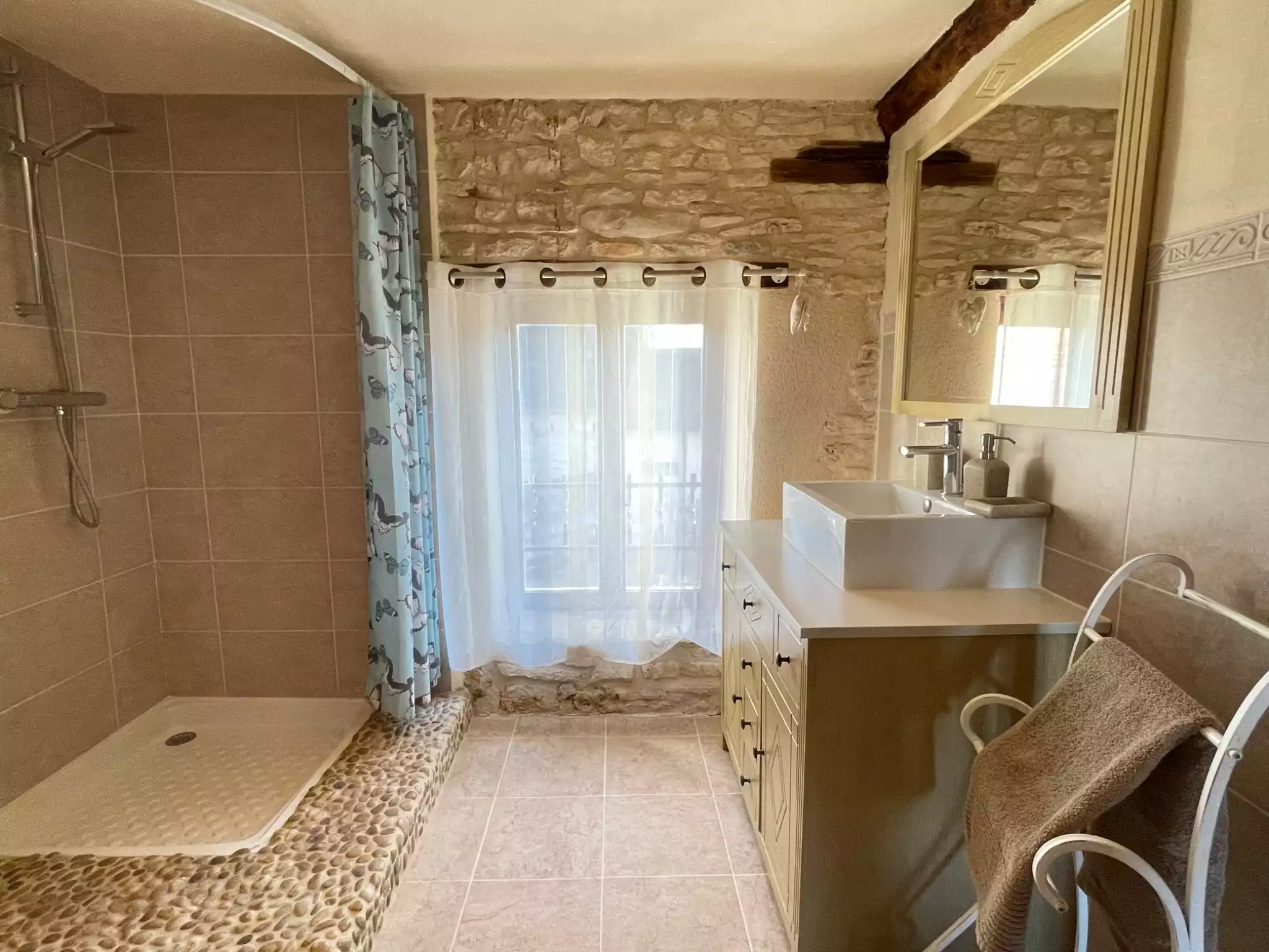 Situated at the back of a tiny hamlet in its own grounds the Marronnier is in a peaceful setting. There’s plenty of space/seating/sunloungers for everyone. The walled garden is a haven with its private pool, covered gazabo, wafting lavender and raised garden beds. The perfect place to relax and unwind. The 6 person jacuzzi is situated in the courtyard beside the huge Marrionner tree.