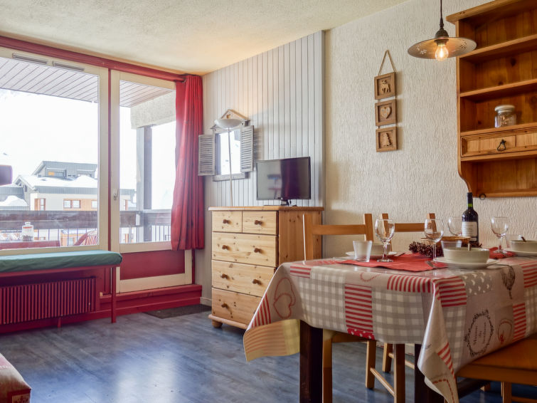 Tignes Val Claret: Residence "Le Prariond" - excellent location: central but quiet, right by the Tignes and Val d'Isère slopes, ski in ski out. Apartment block "Le Prariond (Val Claret)". In the centre of Val Claret, in a sunny position residential area (villas). In the complex: lift, storage room for skis, central heating system. Supermarket 250 m, shopping centre 50 m, restaurant 50 m, bakery 50 m, 5 minute walk to the centre, bus stop 250 m, indoor swimming pool 800 m. Sports centre 800 m, chair lift, skisport facilities 15 m, ski bus stop 250 m, ski school 20 m, ski-kindergarten 150 m. Nearby attractions: Funiculaire de la Grande Motte -en ski 200 m. Well-known ski regions can easily be reached: TIGNES VAL D'ISERE 100 m. Please note: ski bus (free of charge). In case of good snow conditions, the house is accessible on skis. Guarded residence. The keys‘ handover takes place by the agency Interhome in Tignes Val Claret.1-room apartment 28 m2 on 5th floor. Living/dining room with 1 double sofabed (140 cm), TV. Entrance hall with 1 x 2 bunk beds (70 cm). Kitchenette (4 hot plates, oven, microwave). Bath/WC. Balcony, south-west facing position. Beautiful view. Facilities: Internet (WiFi, extra). Please note: smoke alarm. Offer by a private individual according to Art. 155, IV of CGI.